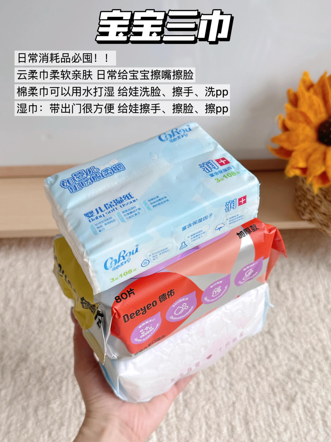 棉柔巾可以用水打湿 给娃洗脸、擦手、洗pp