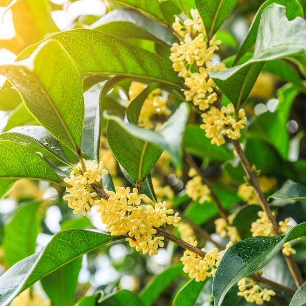桂花对于南方人来说都不陌生,随处可见,可能北方一些地方就不太可能经常打交道,但是从人人都能哼唱的“八月桂花遍地开”的歌声中,也对桂花了解个一二了。 估计知道桂花的一些皮毛的人不少,真正完全了解的也有相当的局限性。 今天就和大家一起谈谈桂花那些事。桂花,也称桂花树、桂树等,是常绿乔木植物中的一种。既是园林植物,也有药用价值。 桂花开花成聚伞花序簇生于叶腋,花色以黄白、淡黄、黄色或桔红为多,香气浓郁,每到盛开季,花香随风传播,沁人心脾。 桂花品种分为八月桂(每年农历八月开花)和月月桂(基本月月开花)两种,从颜色上区分,又有金桂(黄色花)、银桂(浅白色花)和丹桂(红色花)之说。 现代人已经不满足于赏花,而是努力挖掘和创造它的衍生品,梅酱桂花、糖桂花、桂花奶茶、桂花冰激凌、桂花奶冻,还经过萃取制成桂花精油、香薰等一些产品在线上线下火热销售。 由于受天气影响,今年桂花姗姗来迟,但毕竟没有缺席让人们失望,她们的到来,还引来不少人走出家门一睹他们的芳容,让人们欣赏她的风采同时,切身体验她给人们带来的精神上和味觉上的享受。