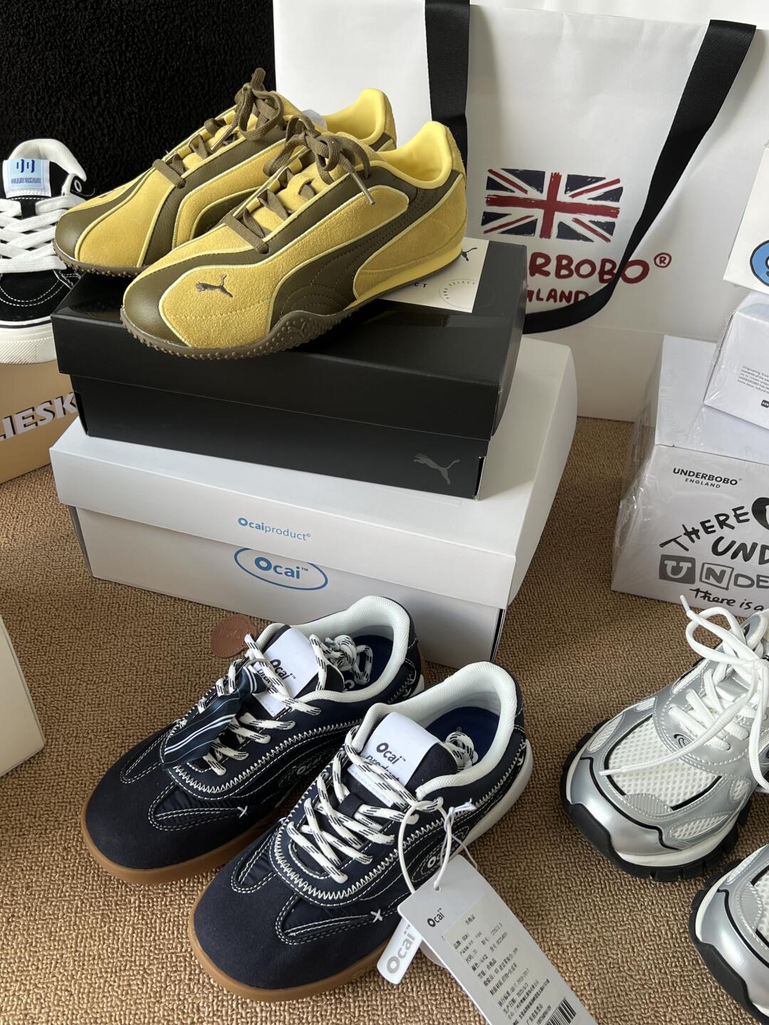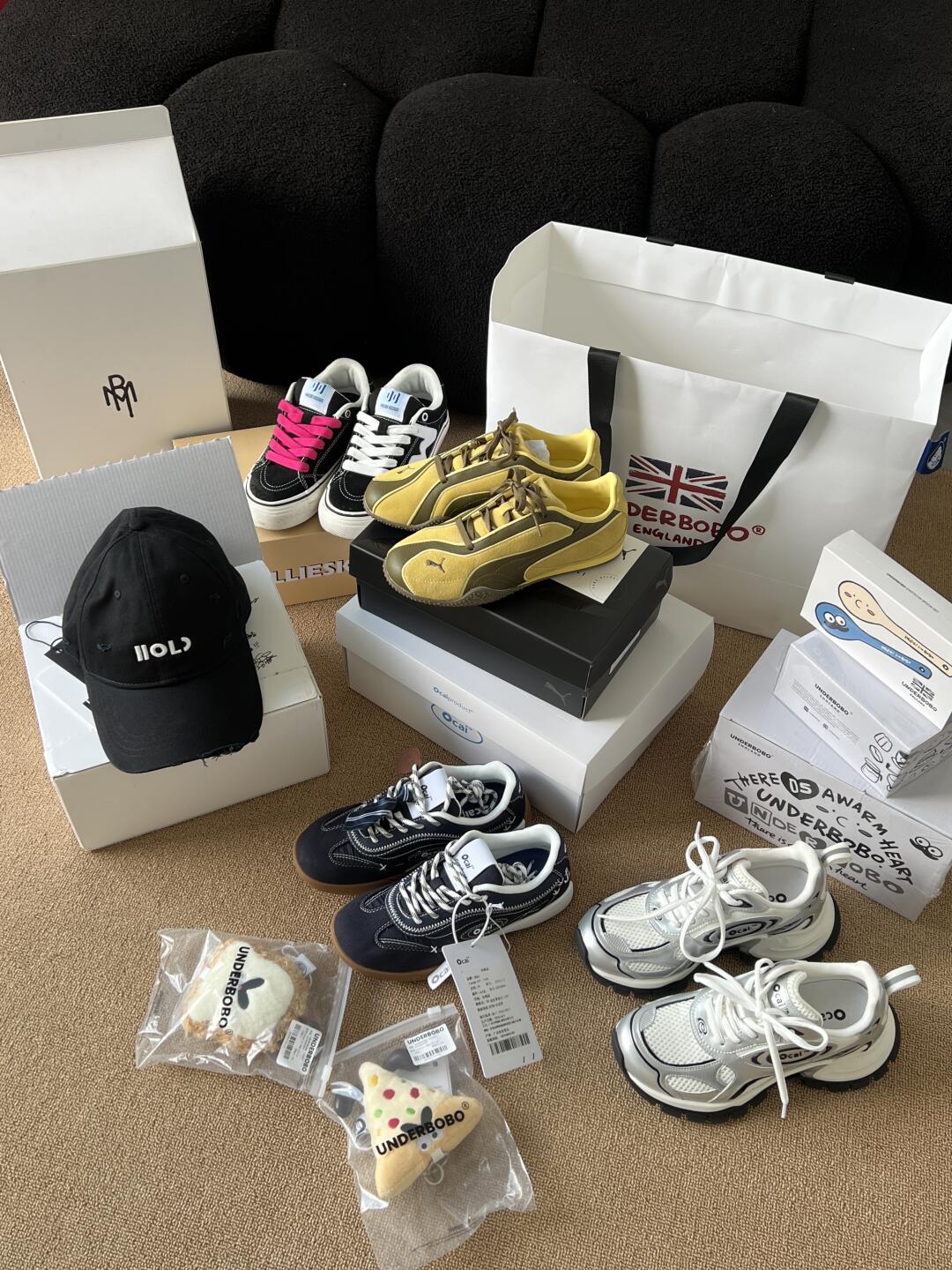 终于买到了Holmen12色帽子~ 黑色最百搭帽型非常好!很推荐! 希望下次能抢到更多颜色哈哈 ~ 几双复古运动鞋很适合秋冬啦,脚感都很好 老爹鞋很显腿长!很增高!要买比平时小一码! ~ Underbobo入了几个新玩意 没拆的茶具啥的打算下次送朋友, 还有两个很秋冬的小挂件,下次可以配新包啦
