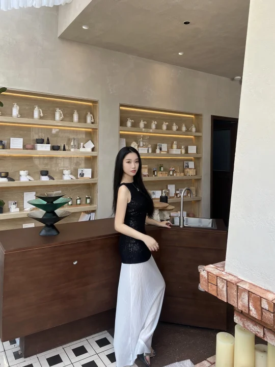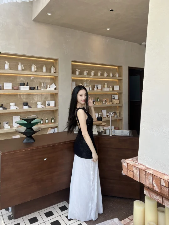 这家店最爱的拍照角度 有点像家居展览,还蛮出片的 今天穿了一条简单又很高级的裙子 亮点在背面~ 很适合看展或者参加活动