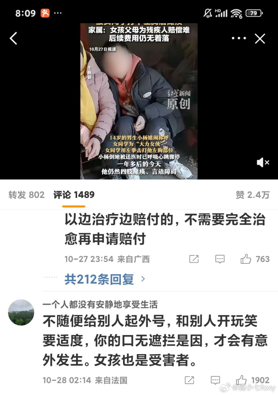 14岁男生被女同学击中左胸后瘫痪施害者只承担20%责任,学校却要承担70%责任,受害者居然要承担10%责任[流汗]过失伤人致瘫痪,如果做伤情鉴定,换成成年人估计得是刑事责任了。