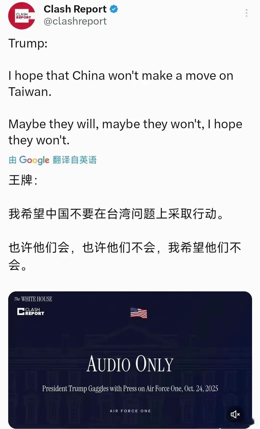 中美吉隆坡谈判第一天,特朗普发文称:“我希望中国不要在台湾问题上采取行动。也许他们会,也许他们不会,我希望他们不会。”