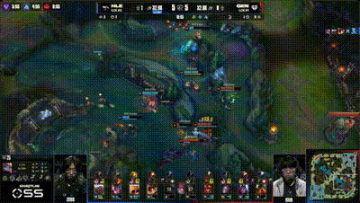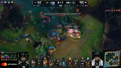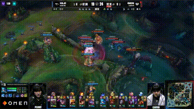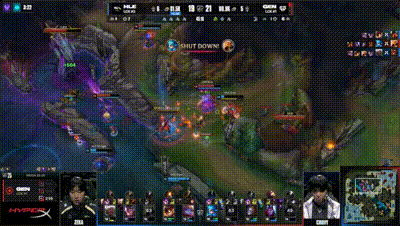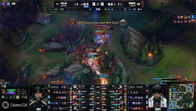 比赛前期GEN连续针对Zeus安蓓萨得手,HLE同样紧咬局势。