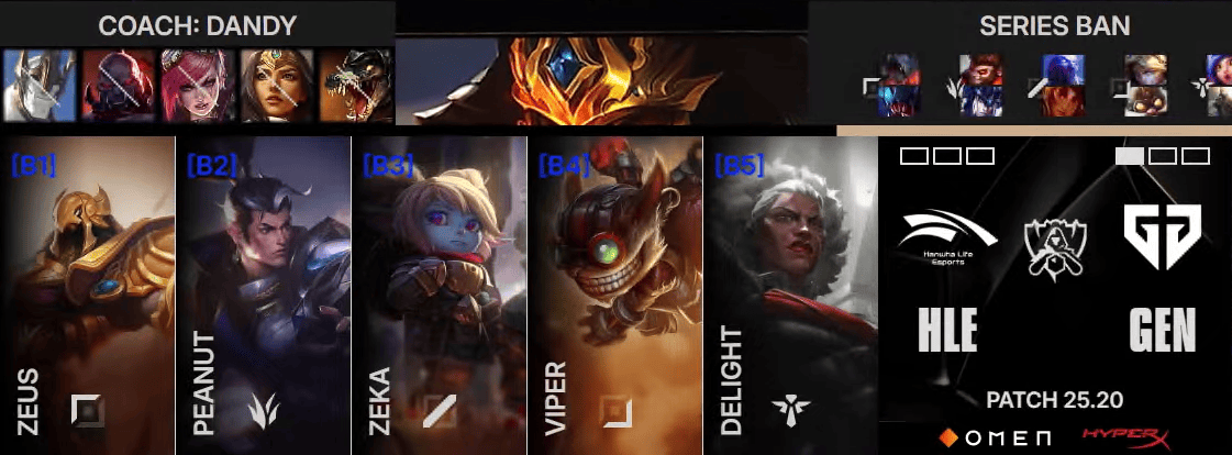 HLE选用:Zeus安蓓萨、Peanut赵信、Zeka沙皇、Viper炸弹人、Delight波比