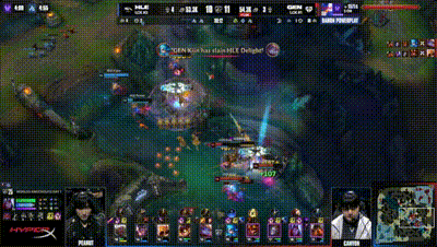 比赛第18分钟,两队爆发小龙团。HLE一波打出1换4大胜。