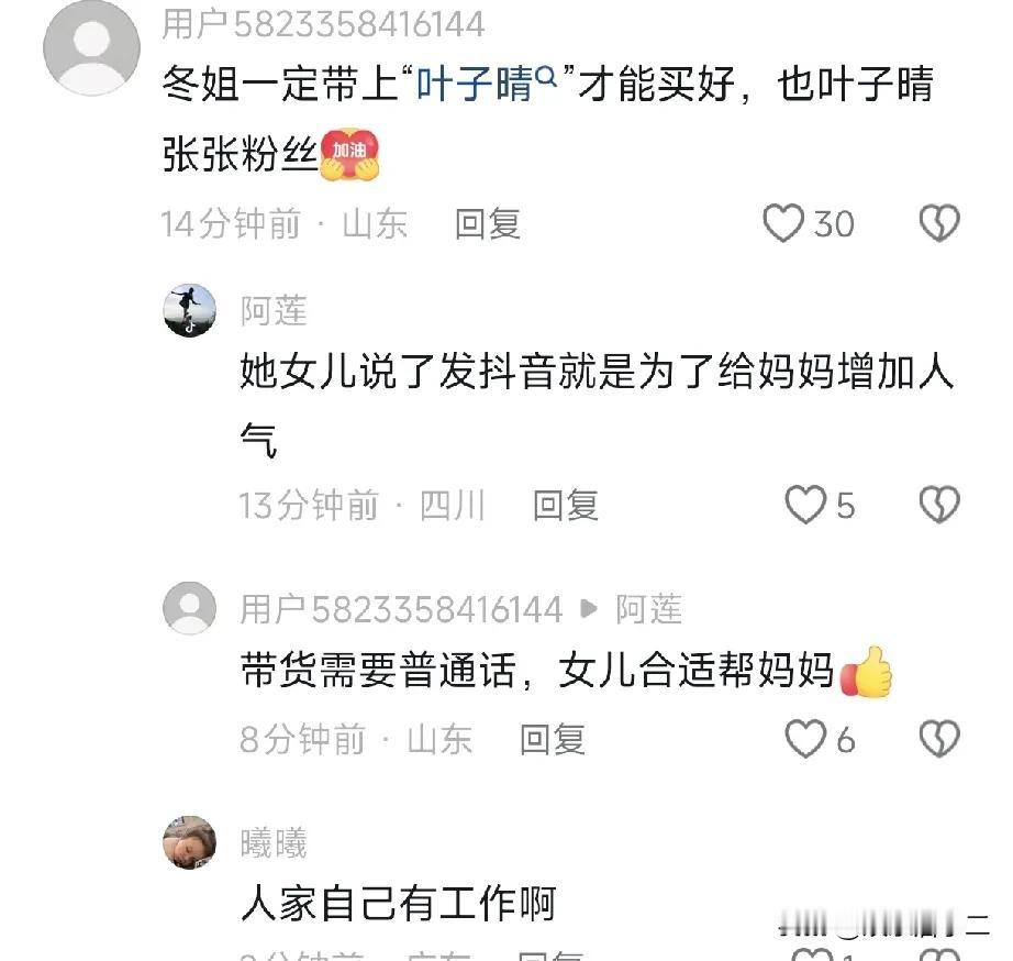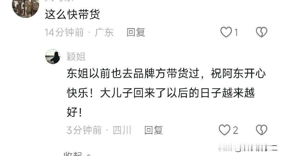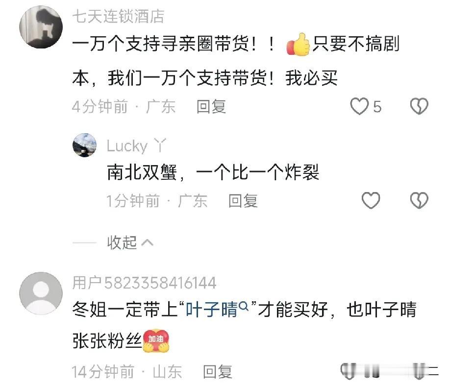 叶锐聪妈妈要带货了!10月30号带货鸿星尔克。 本来品牌方安排了一个直播主持,但被东姐拒绝了,她坚持邀请鱼老板当她的主持。 看着鱼老板委屈的样子,估计给开的工资并不多。 看评论区都是支持东姐带货的,还有人让东姐带货那天一定带上女儿叶梓晴,不过也不现实,叶梓晴在银行工作,怎么可能去直播间带货,视频连线倒有可能。 鸿星尔克最喜欢找寻亲圈的人带货,很多寻亲的都卖过这个品牌,前不久也找过瑾汐一家。 不过这才找到儿子,还没几天就开始带货,是不是有点太着急了?前不久东姐直播还说暂时不考虑直播带货吗? 难道东姐每天晚上连续直播,保持热度也是为了带货?那表演成分就实在太明显了。 不过也可以理解东姐,虽然家里有农庄,还有两栋楼收着租,但谁又会嫌钱多呢,况且现在东姐又生病了,给儿子多赚点钱也无可厚非。