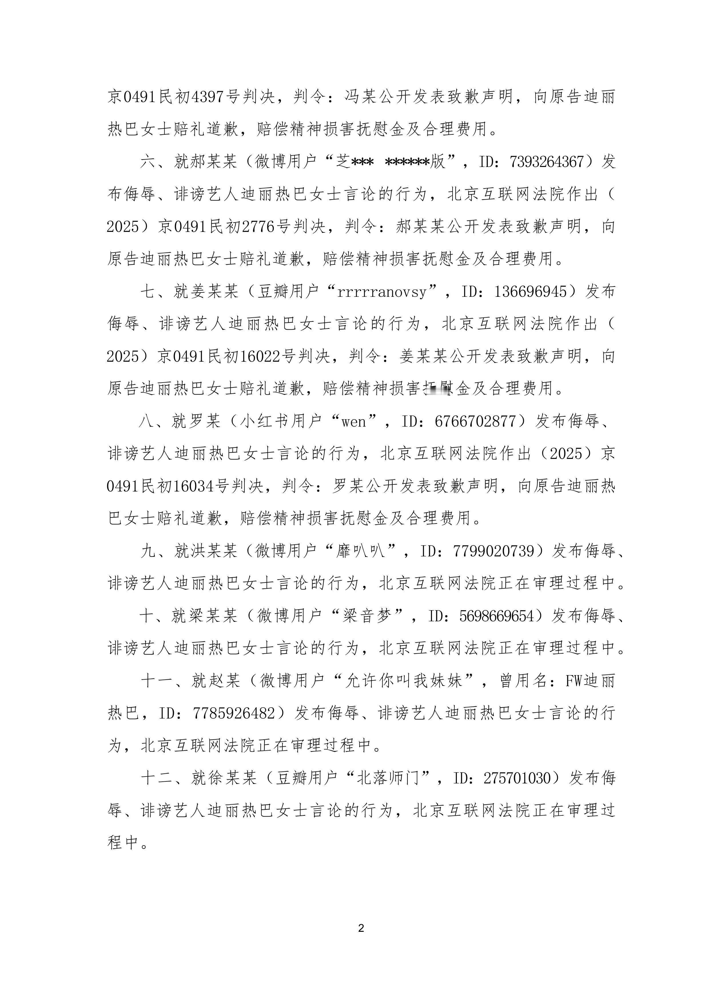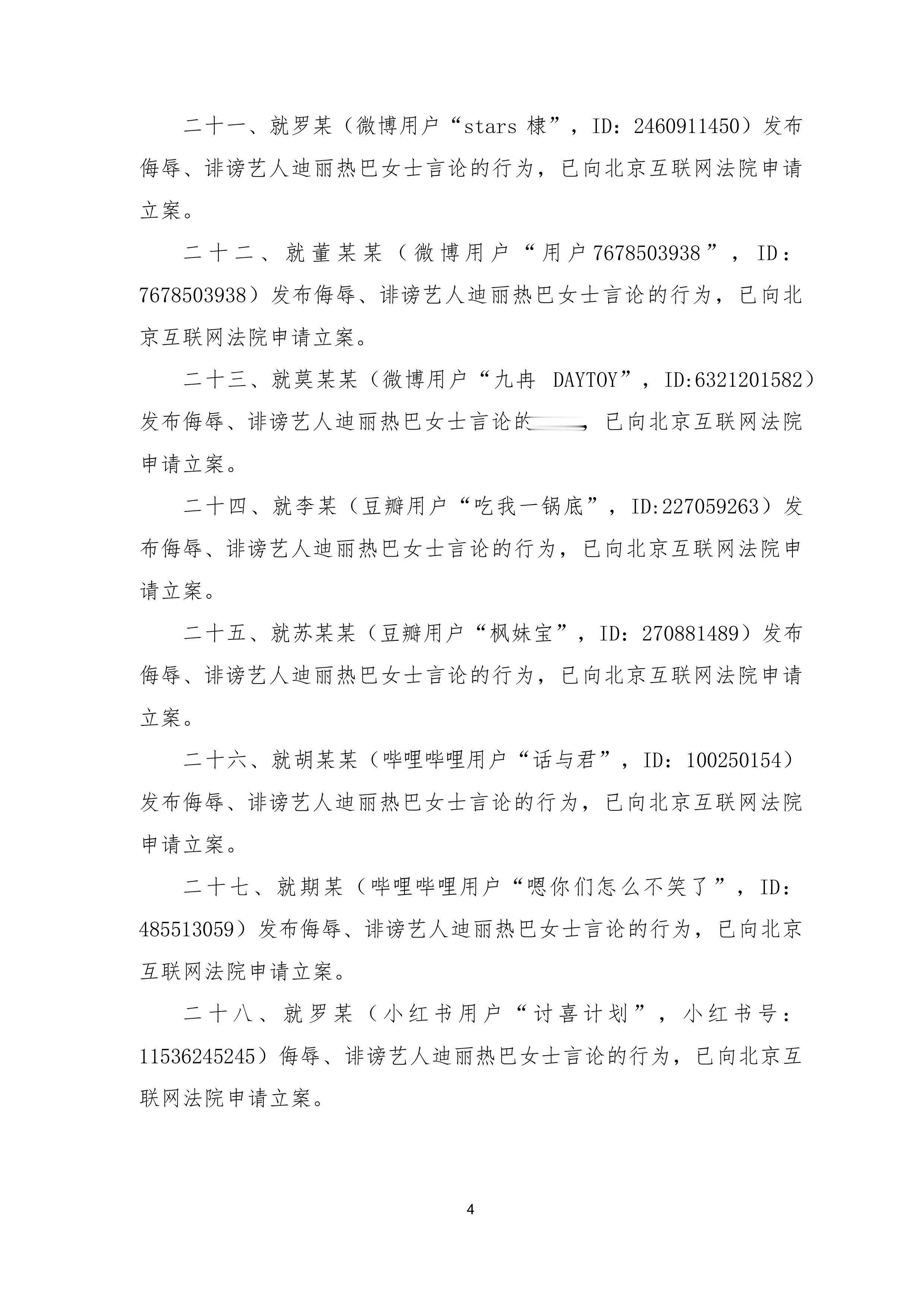 迪丽热巴[超话] 针对近期相关网络用户发布和传播对迪丽热巴女士侮辱、诽谤等言论的