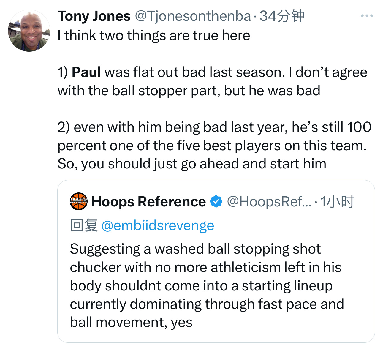 随队记者Tony Jones转发并评论道,“我认为以下两点都成立:
