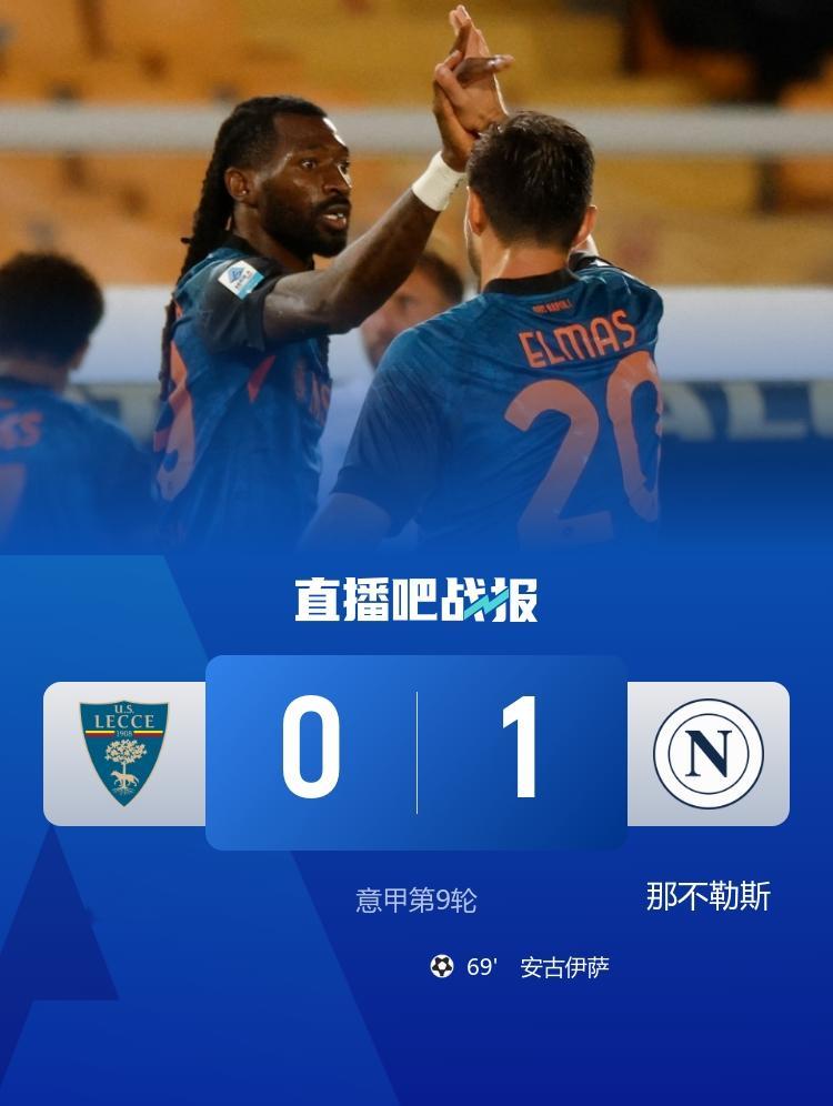 安古伊萨制胜,瓦尼亚扑点,那不勒斯客场1-0战胜莱切取得两连胜。