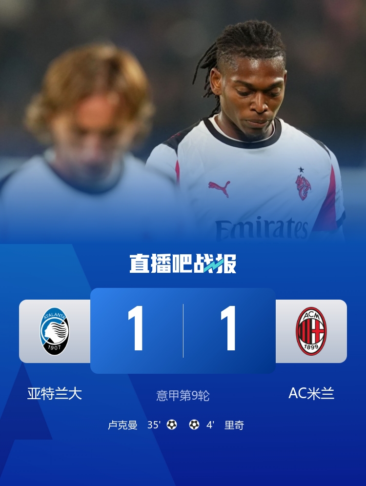 里奇远射破门,卢克曼扳平,迈尼昂屡神扑救主。最终亚特兰大1-1米兰。
