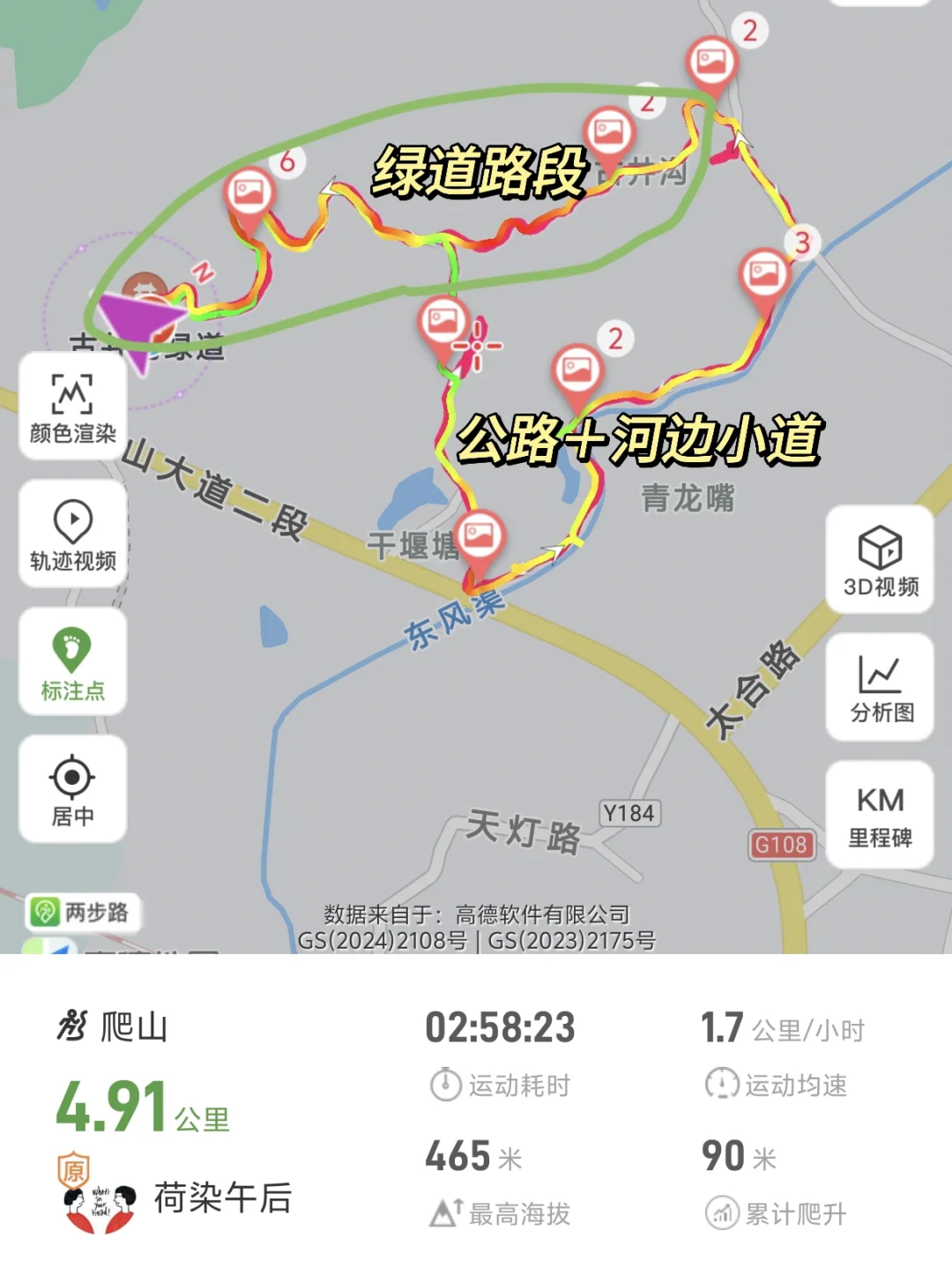 🚶徒步:如图17,绿道往返3km左右,整个环线5km左右(沿河边路段为土路,大雨后不建议走环线)