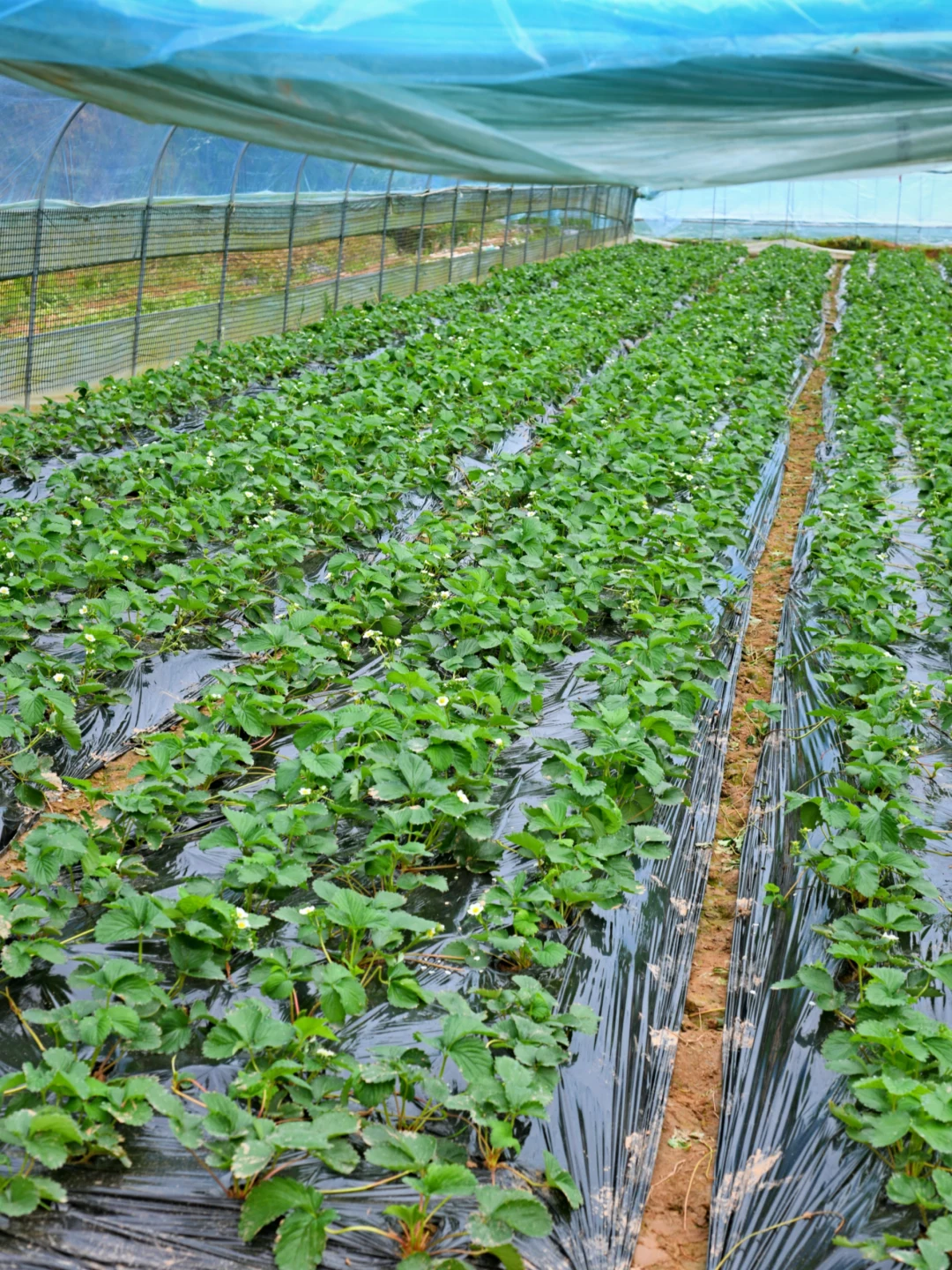 徒步沿途可见大片的草莓种植基地,冬春季果实成熟,可入园采摘。