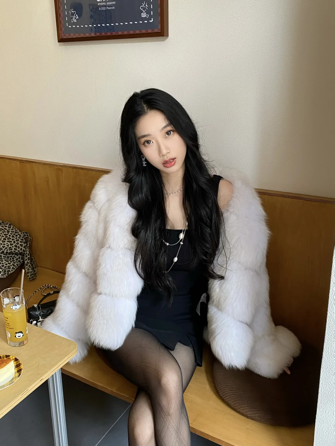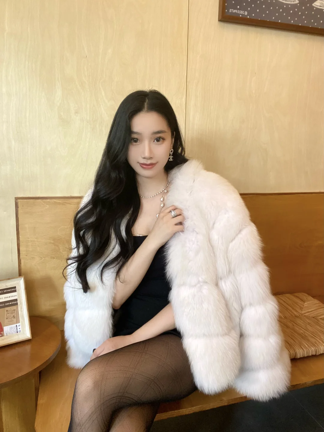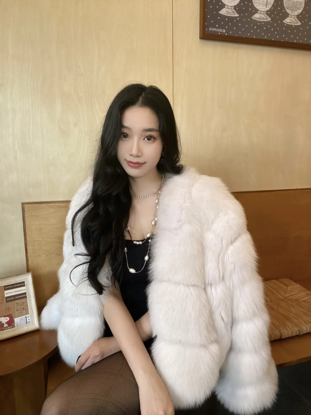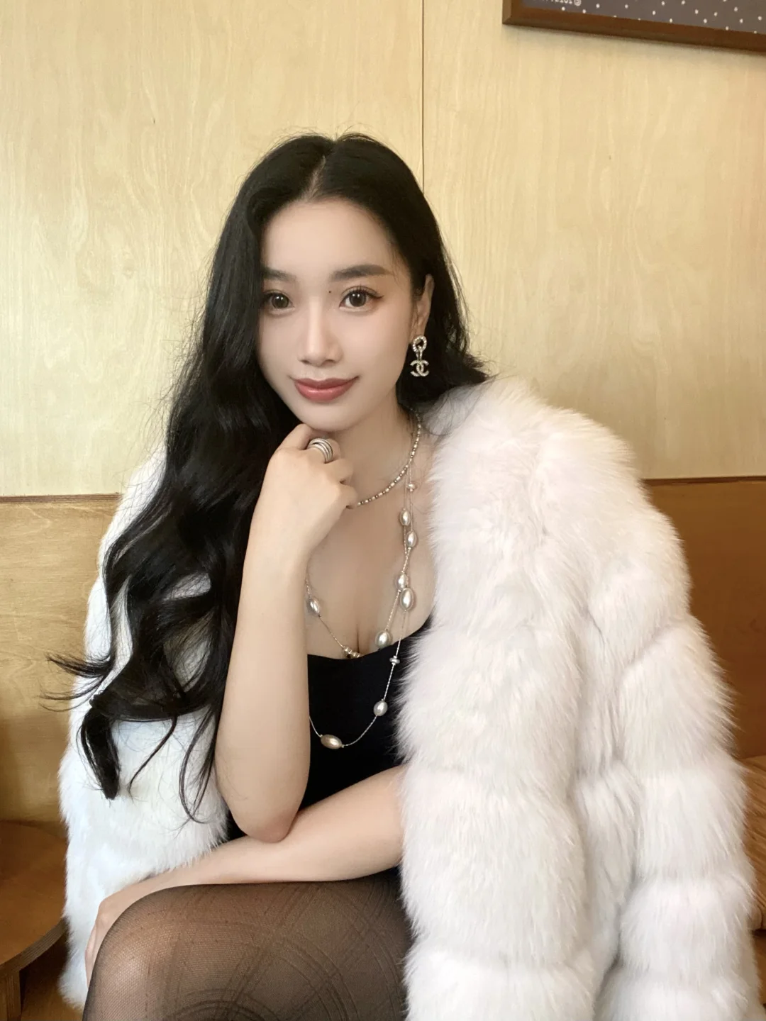 黑丝穿搭 皮草 冬天还得是皮草穿搭 皮草穿搭 白色皮草 皮草外套 皮草大衣黑丝高跟