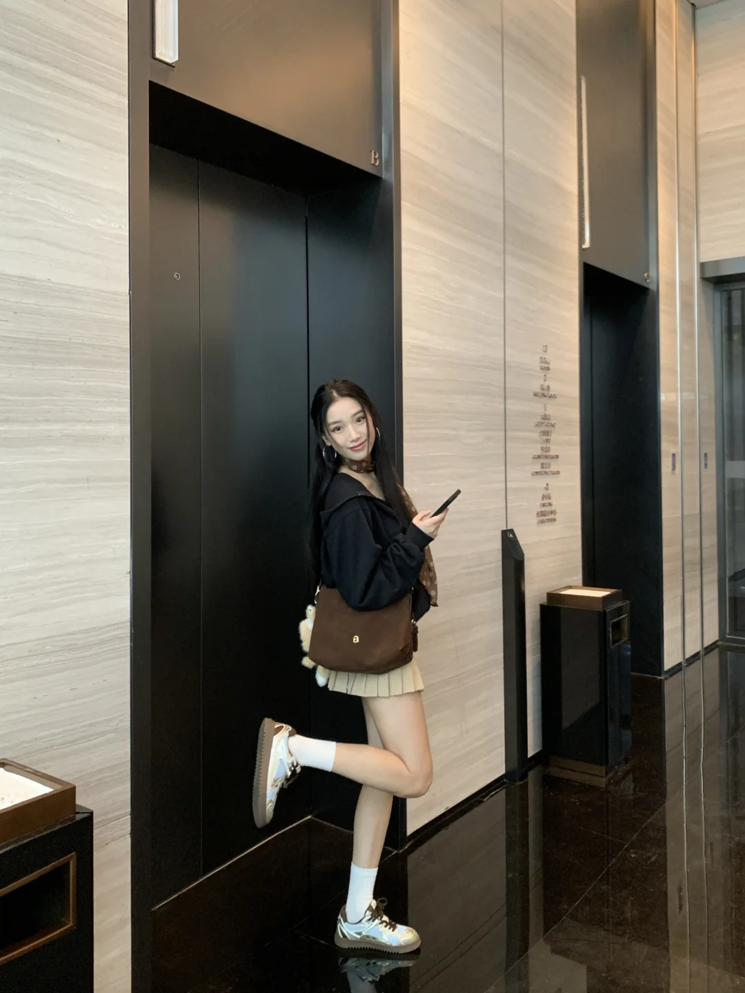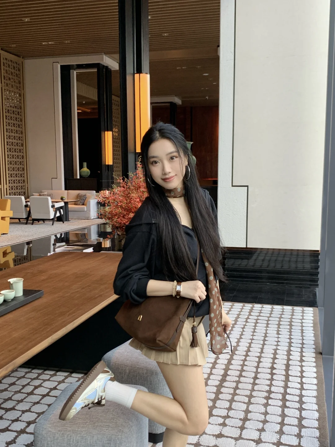 今天穿休闲风,整体是棕色系 搭配运动鞋一套很舒服啦