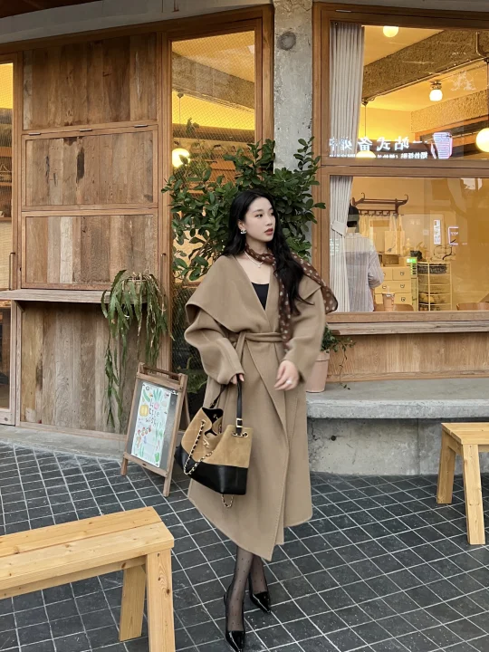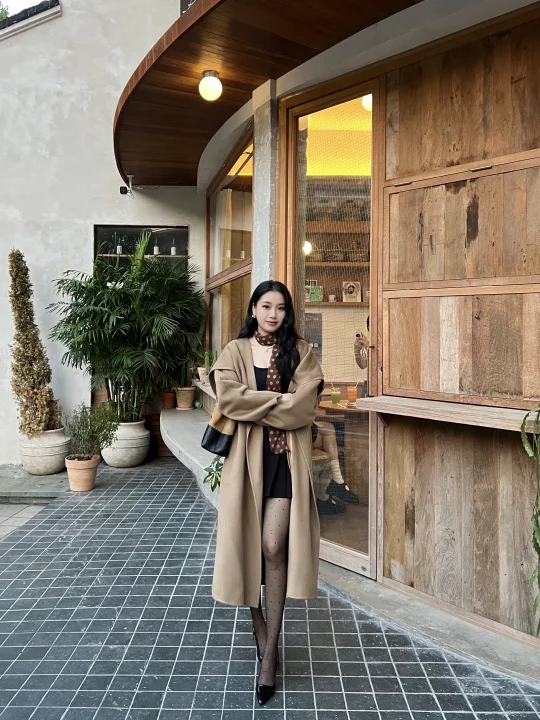 气质御姐穿搭!驼色大衣➕黑丝高跟