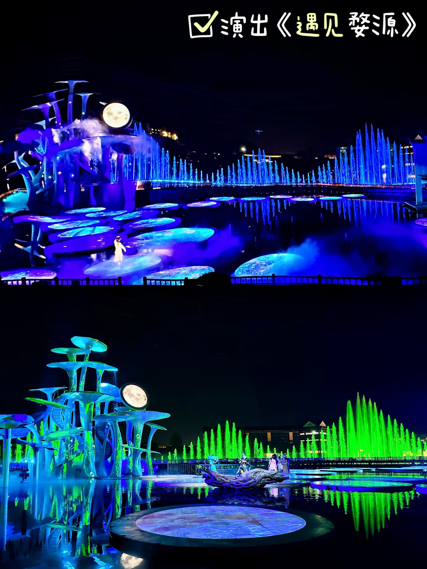 🩷20:00来看《遇见·婺源》实景演出,讲述了婺女飞天的故事,壮阔的实景伴随着光影、音乐、喷泉与烟花,视觉与听觉的双重享受呀,太壮观啦~