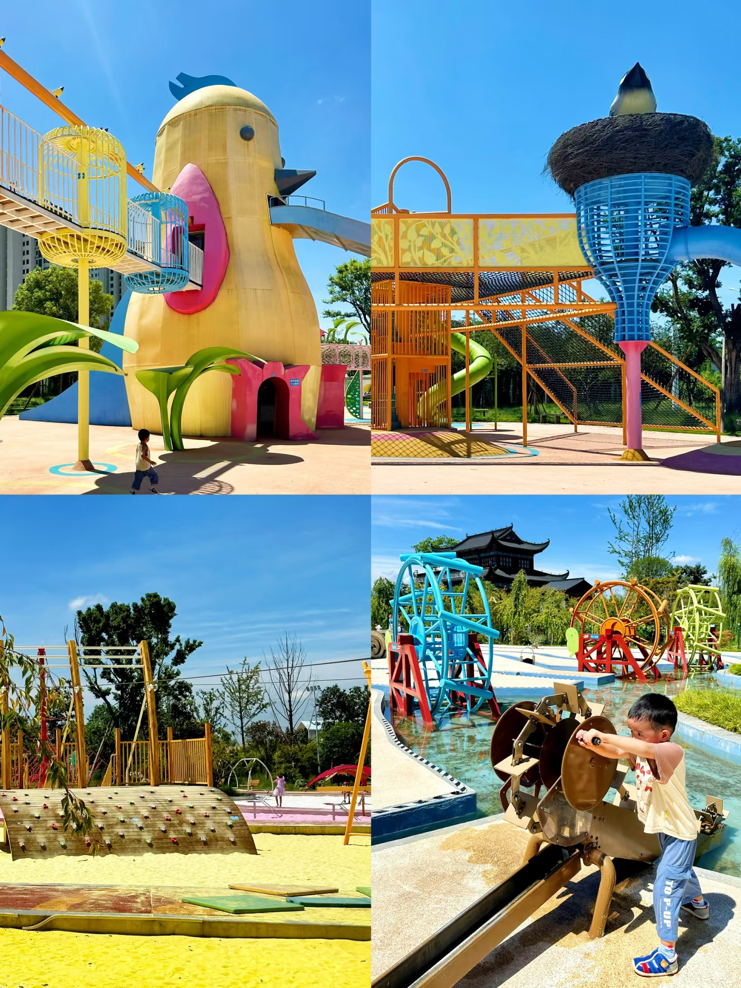 第二天早上吃过早饭,就来飞鸟乐园玩啦。巨型滑梯、秋千、无动力水设备、彩虹挖沙池、卡丁车……小朋友玩的太过瘾了!玩累了就来文昌阁打卡绝美书店,这里拍照太好看啦