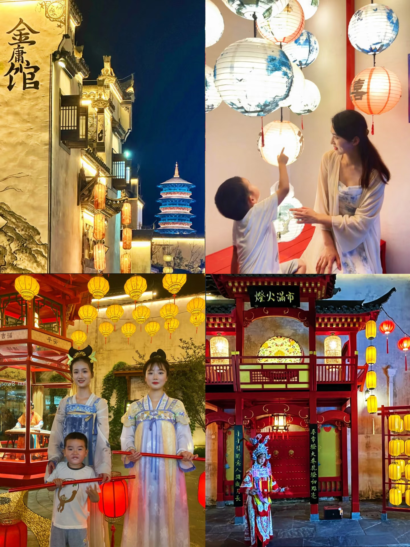 看完打铁花,沿路逛逛金庸馆、灯笼馆、徽市街、鱼纹广场。这里简直是大唐盛世再现啊,古徽州的建筑配以大红灯笼、油纸伞、徽州鱼灯,绝美~一路还有鱼灯表演、篝火互动、戏曲表演、古彩戏法,看的人目不暇接(具体表演时间表见图)