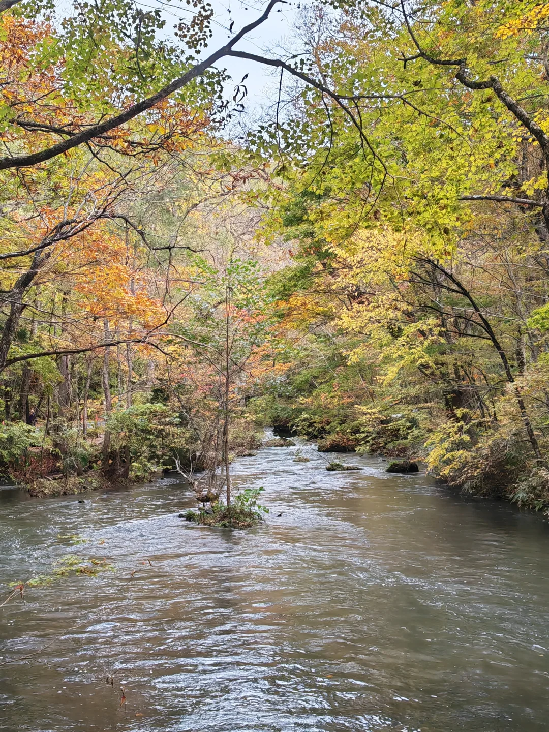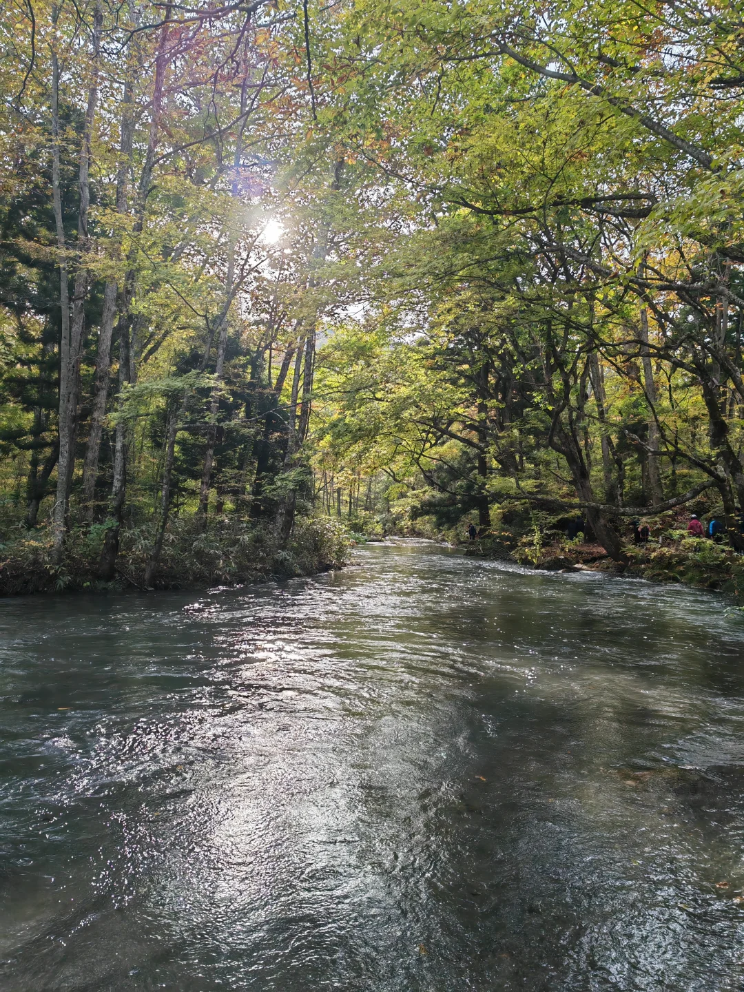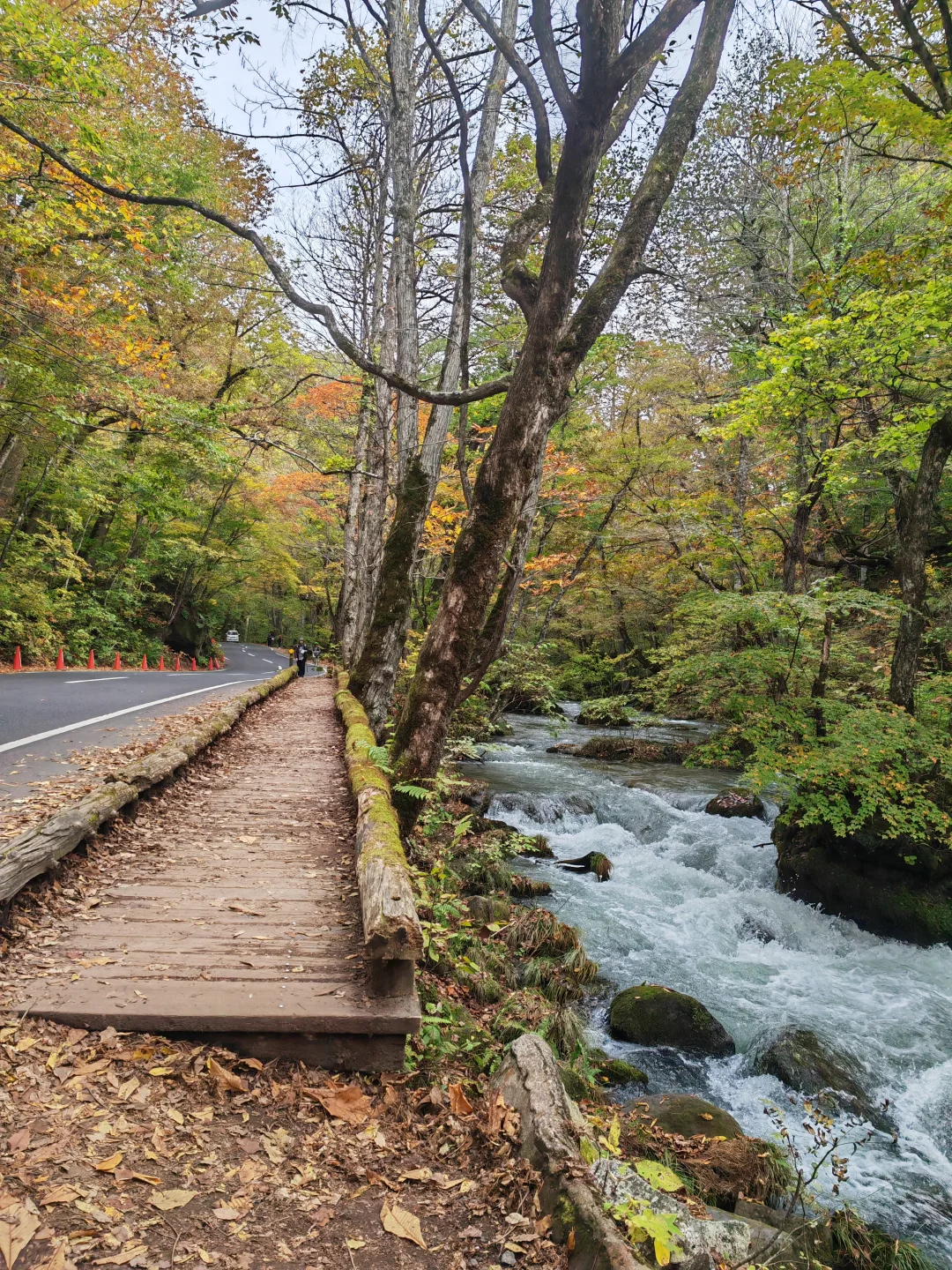沿着溪流徒步了一小小段路,15:34 搭乘大巴返回青森站。