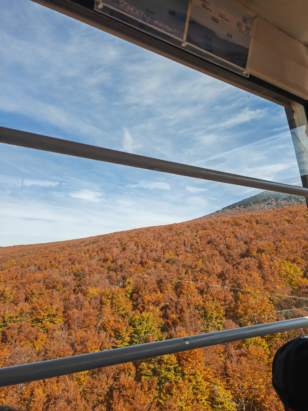 11点坐上缆车上山,约20分钟到达山顶。在观景台附近走了一小圈,11:50 左右又坐缆车下山。