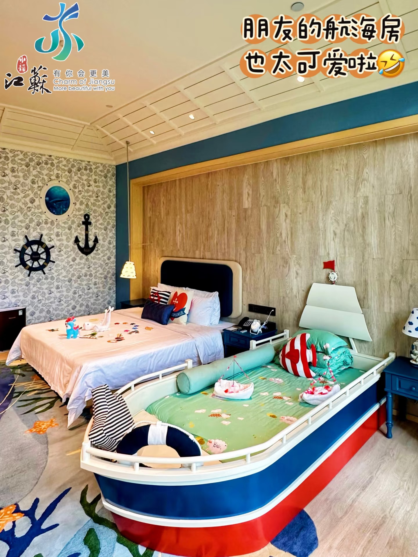 乐园里面有配套的草房子酒店,很方便。我们住的是星空主题房,有两张大床和一张上下床,两大两小也没问题;楼梯床超可爱,小朋友玩的不亦乐乎~朋友住的航海亲子房,满满的海洋元素,小朋友超喜欢轮船小床