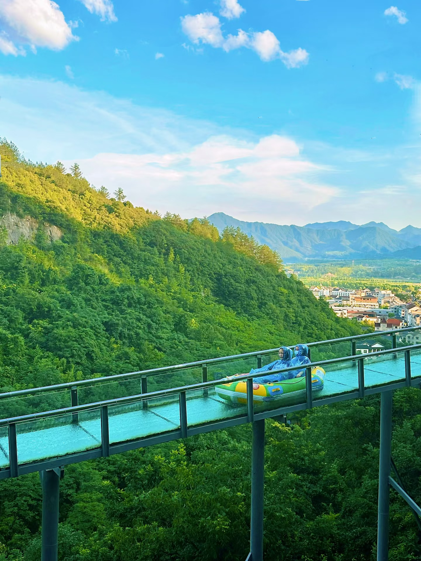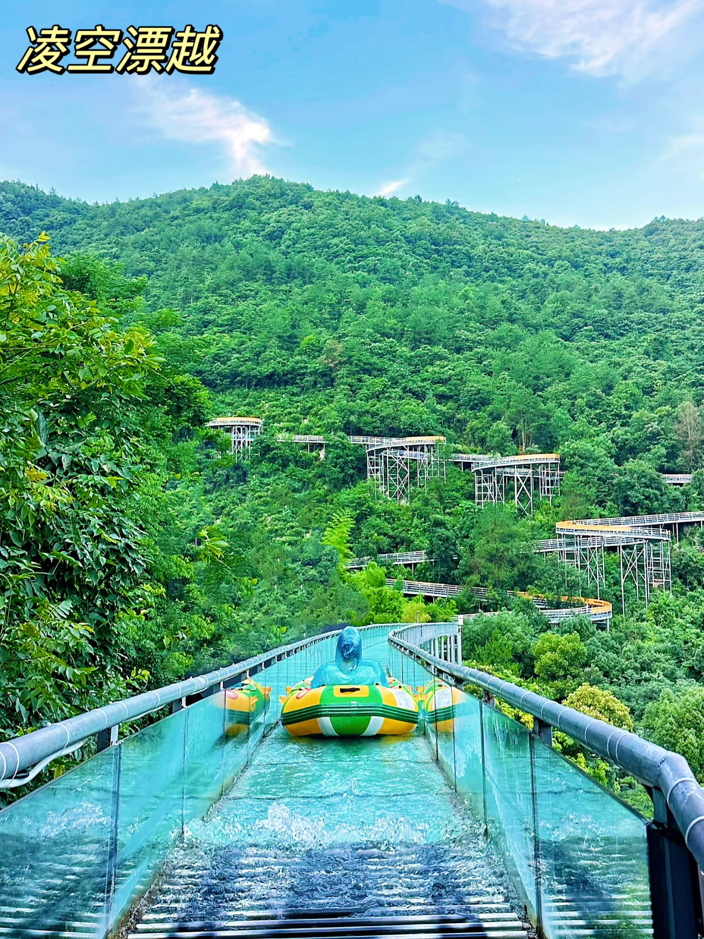 空中的玻璃栈道漂流清爽又凉快~坡度不是很大,小朋友也可以玩~tips:景区有雨衣,自己不用带