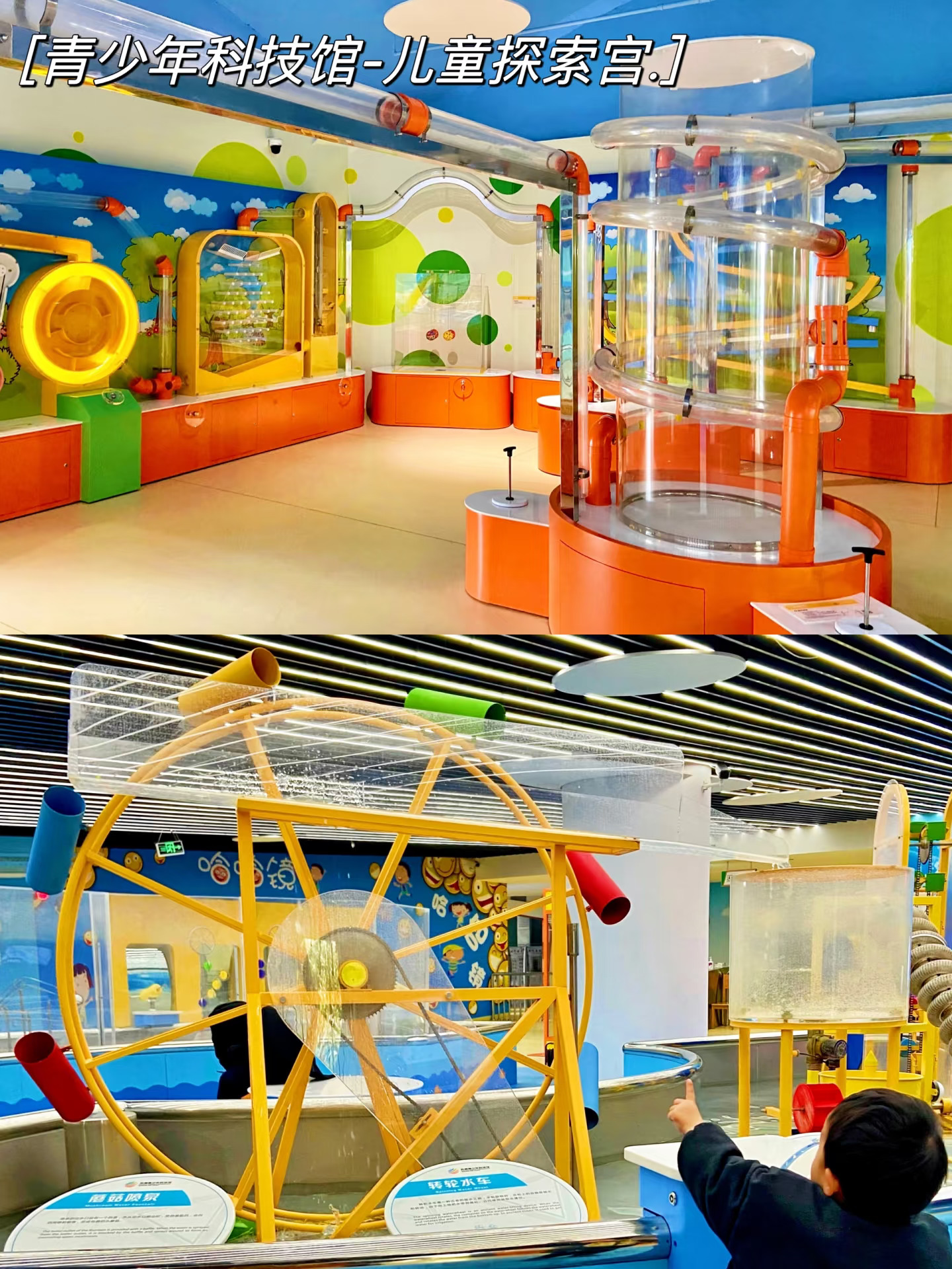 好玩又长知识!七彩宇宙,电磁探秘,镜子世界,数学魅力,交通世界…里面还有一个游乐场般的儿童探索宫,小球传输,螺丝钉工具墙,挖沙,开车,奇妙变色龙,传声筒,水车…小朋友玩的不亦乐乎呀~