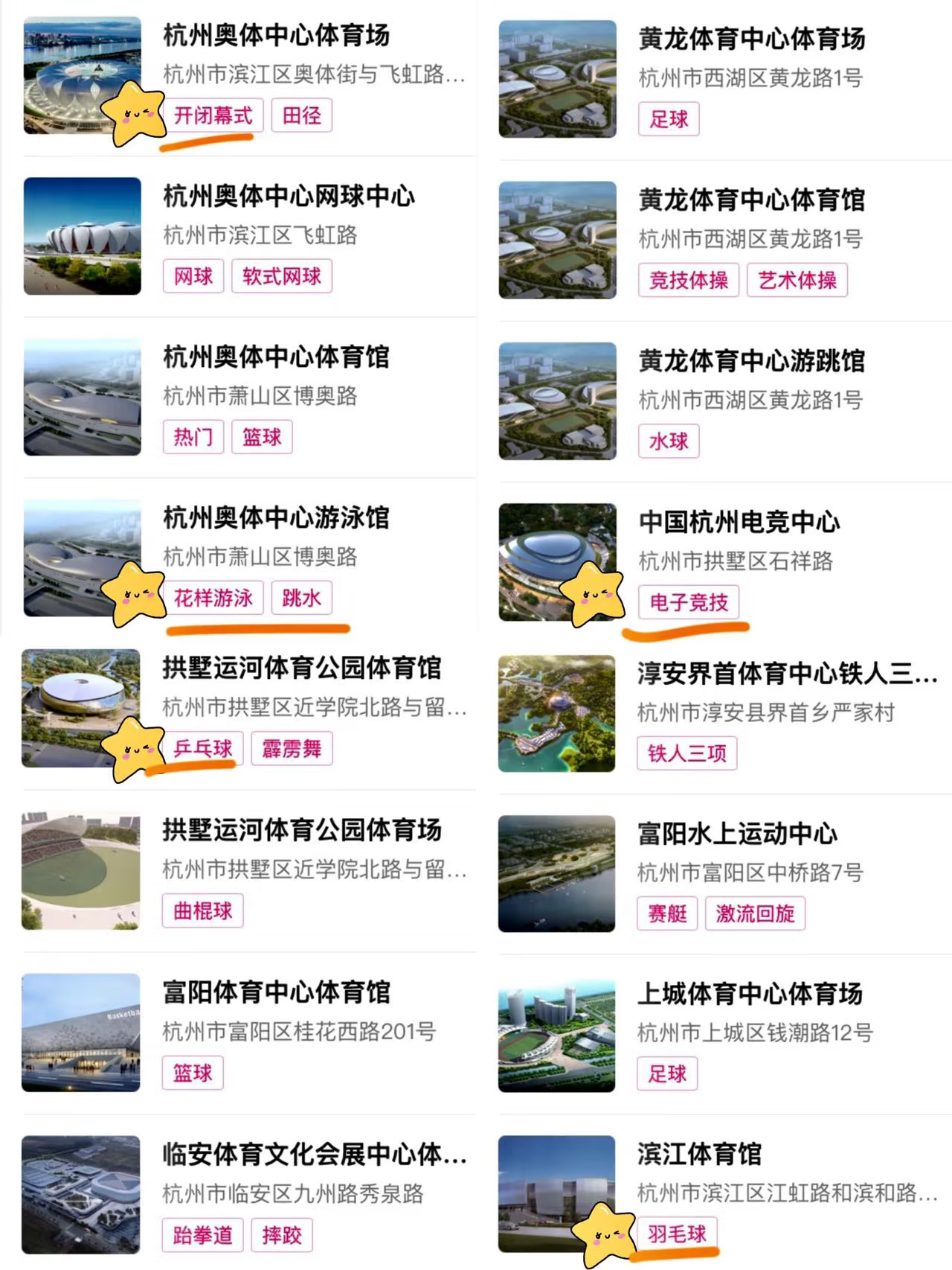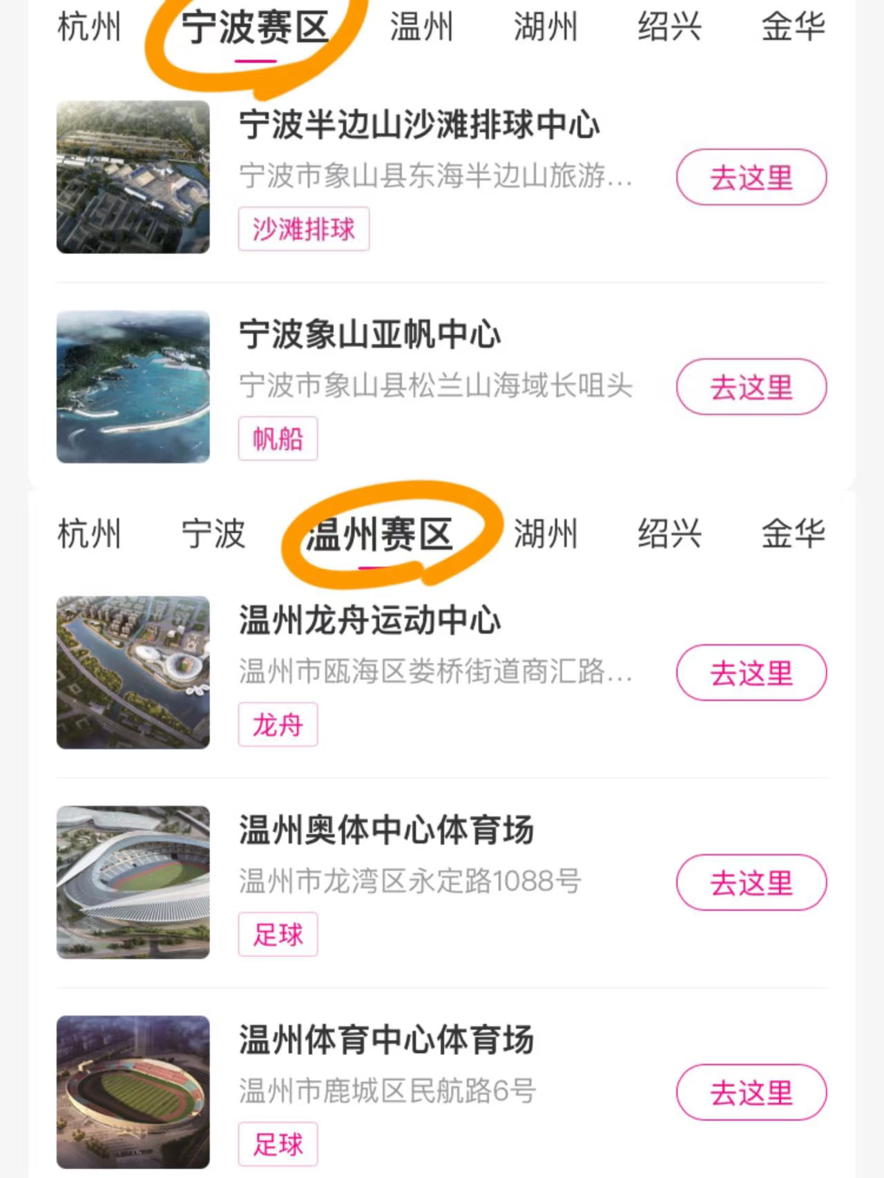我才知道,亚运会的场馆不仅在杭州,在宁波、温州、湖州、绍兴、金华都有赛区~具体项目所在的场馆看图,不要走错场馆哦~