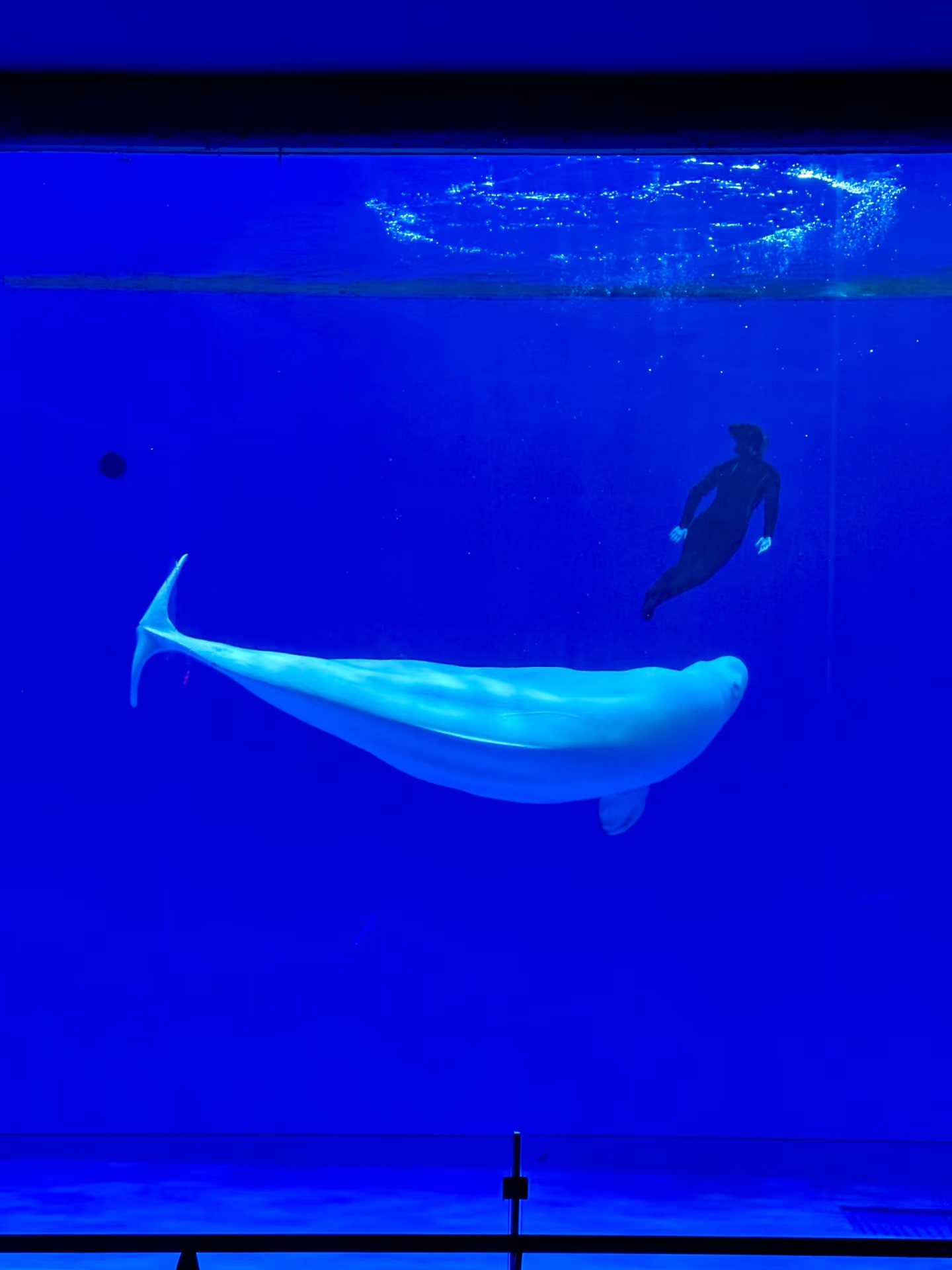 两只白鲸和舞者在海底共舞,唯美又梦幻~