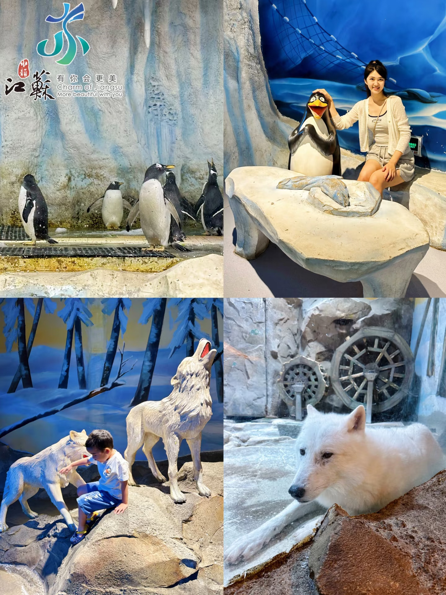 有白鲸、鲨鱼、瑶鱼等上千种鱼类,还有呆萌呆萌的小企鹅、酷酷的北极狐,小朋友超喜欢小企鹅,还要学企鹅走路,太搞笑了哈哈