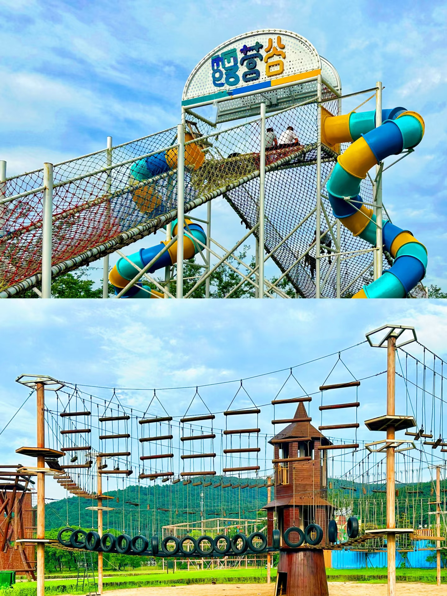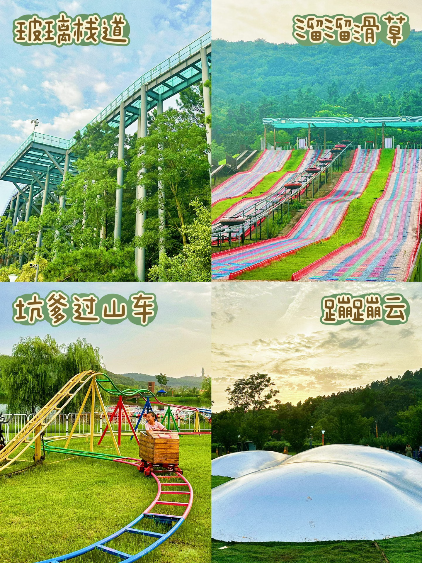🩵再往园区里面走走,在湖边还有一个很大的游玩区域,有玻璃栈道、溜溜滑草、水上休闲船、蹦蹦云、坑爹过山车