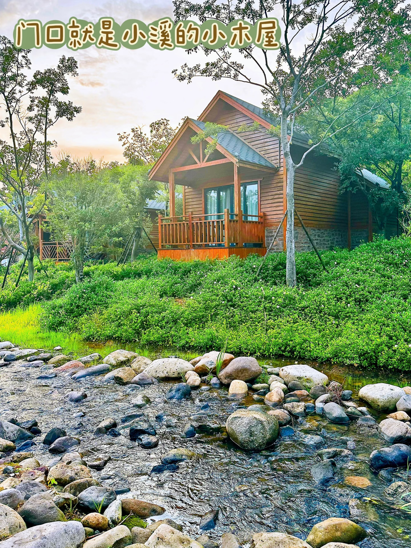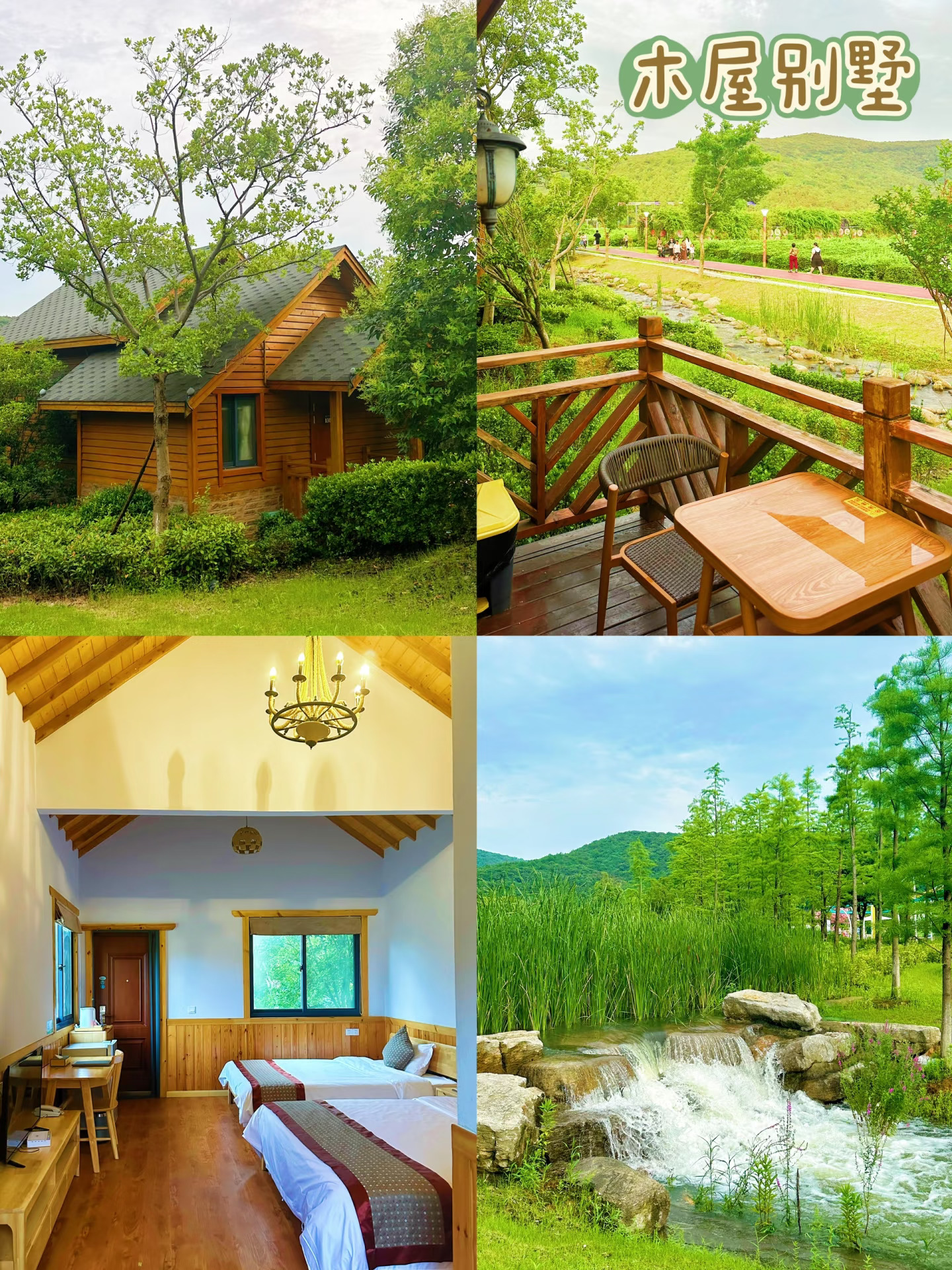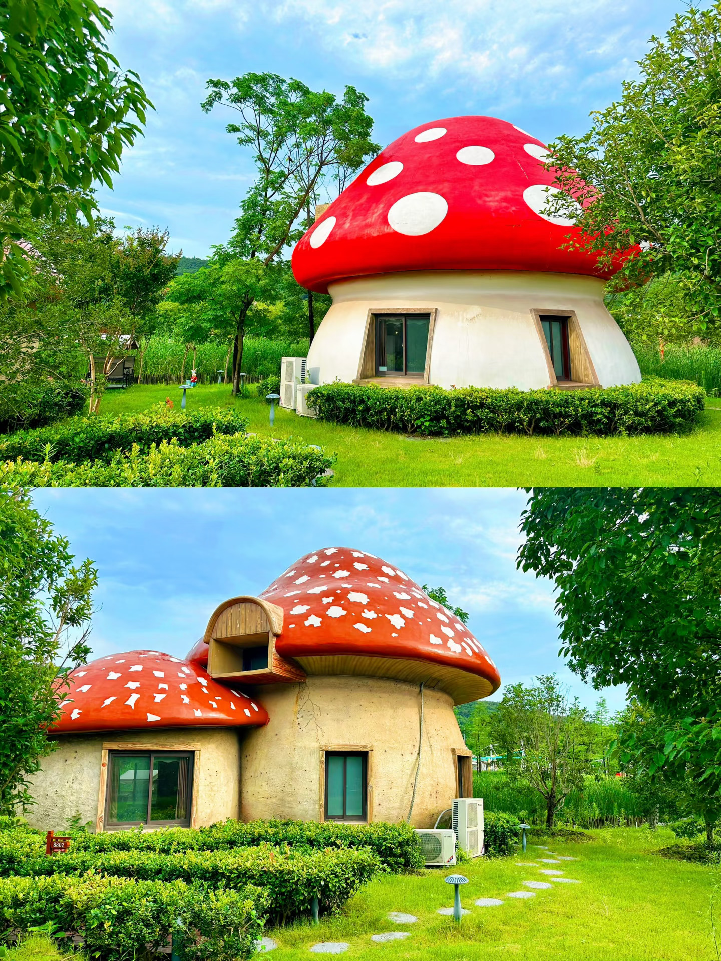 晚上看完烟花有点晚啦,可以直接住在园区里。双拼房车、木屋别墅、帐篷酒店、亲子主题房等超多~我喜欢蘑菇屋🍄,毛毛说“妈妈这是童话世界呀!”小木屋也很可爱,门口有一条小溪流过,小朋友玩水很方便