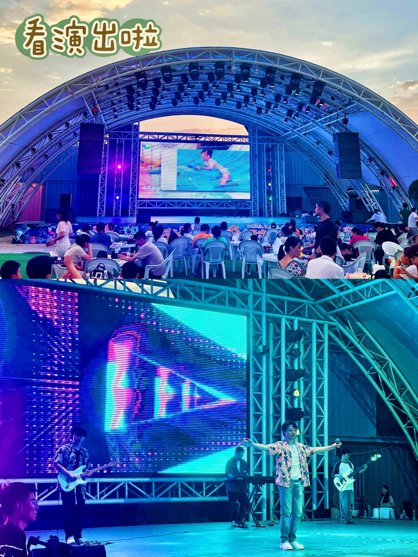 美食街区有很多小店,中式炒菜、西式汉堡都有~暑期还有小吃市集:烧烤、小龙虾、奶茶各种美食,演出台前有露天座位,一边吃美食一边看表演太爽啦