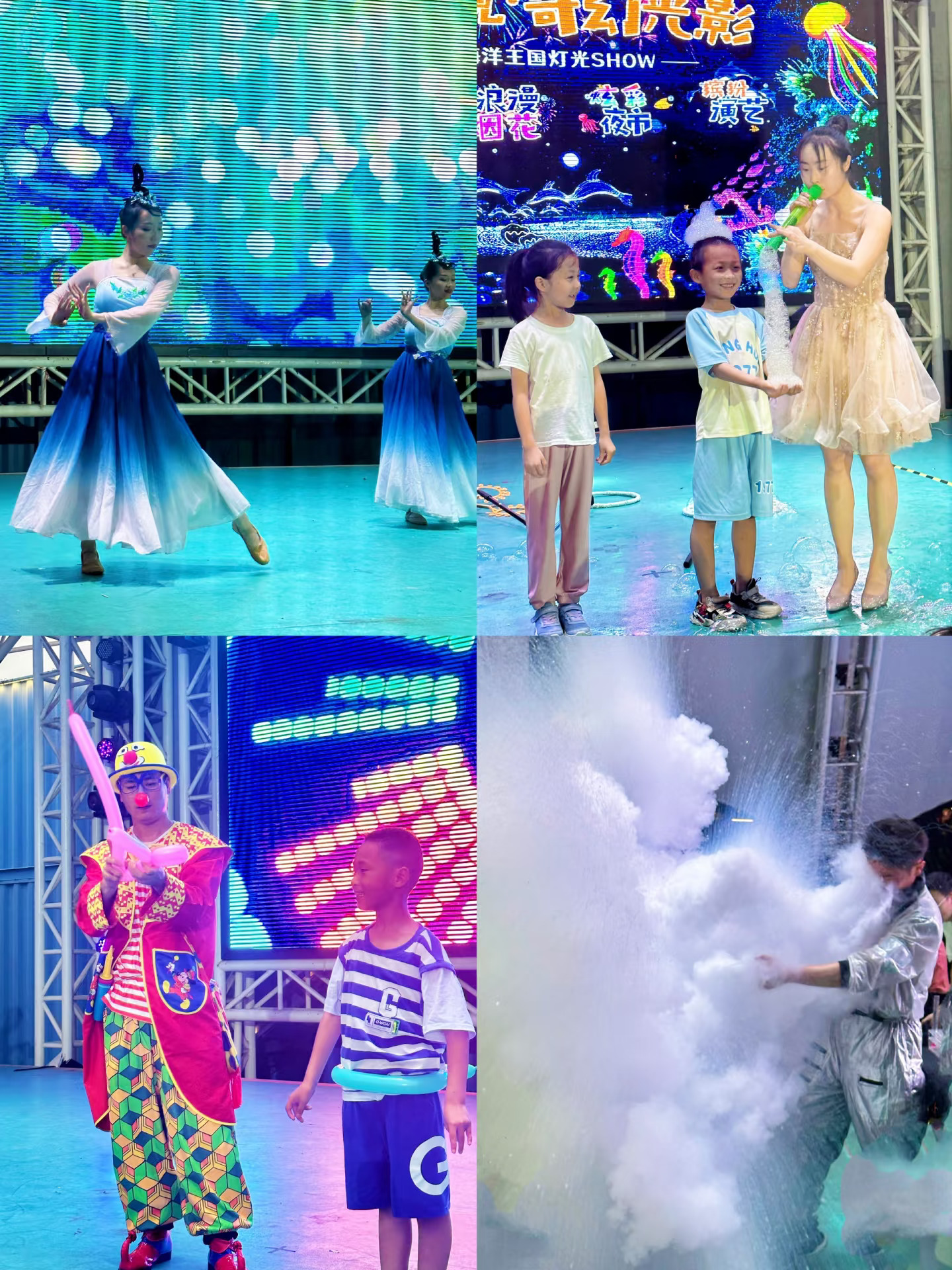 ♥️现在夜公园开放啦,晚上的活动好丰富:海洋王国奇幻灯光秀;星空舞台有各种表演:小丑表演、乐队歌舞、科学秀、泡泡秀,小朋友上台互动超开心!演出结束后的烟花秀太美啦