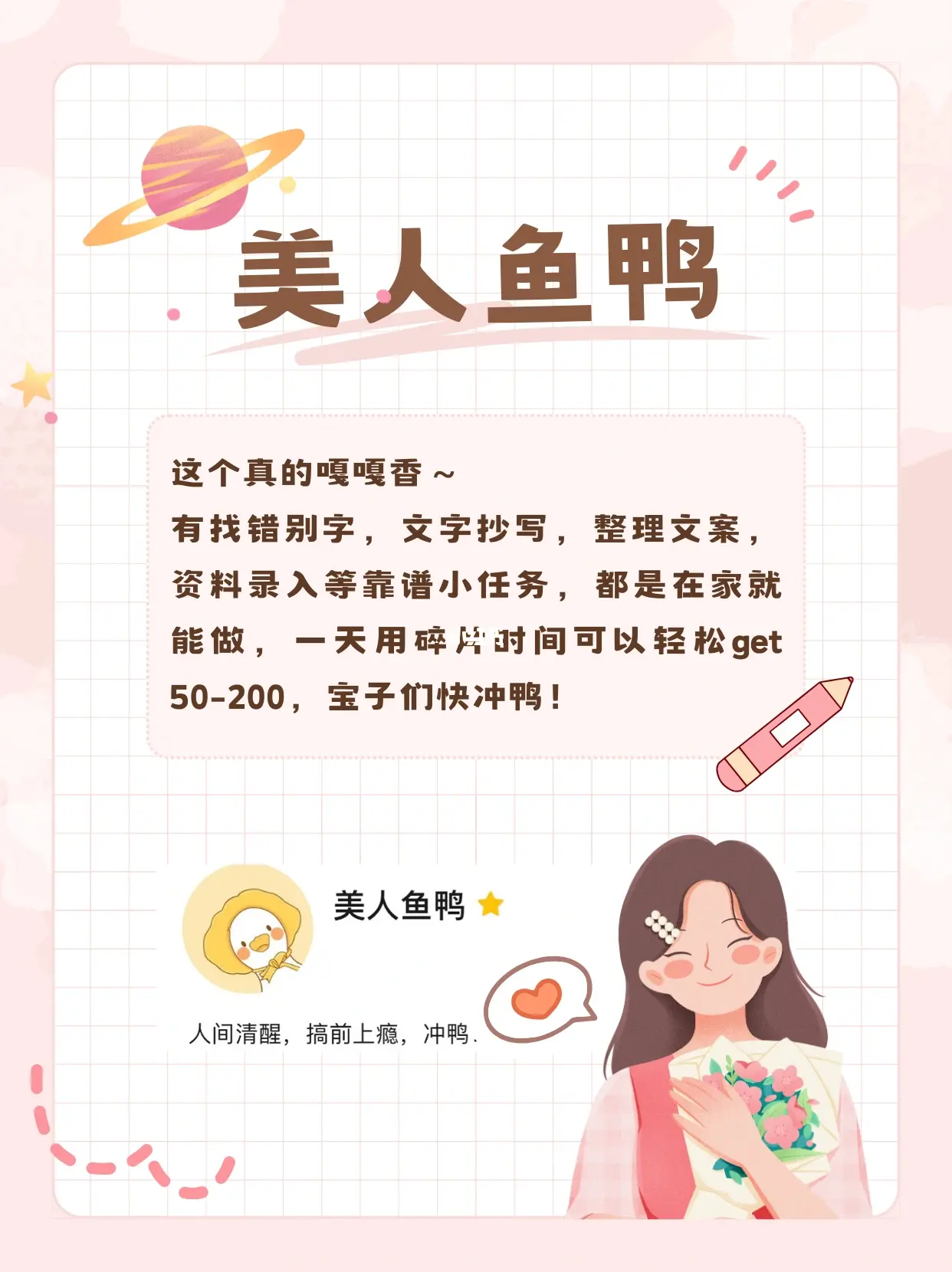 女生的安全感来自于自己赚💰自己花‼️ 给大家推荐几个靠谱宝藏号,建议收藏哈❤️ 适合新手小白、学生党、上班族 有空闲时间就可以多赚点0花🌸 ✅两只飞飞 ✅幸运七七 ✅美人鱼鸭 ✅梦回青年 ✅林合合 ✅桃喵喵 ❤️祝每个宝都早日实现财富自由‼️