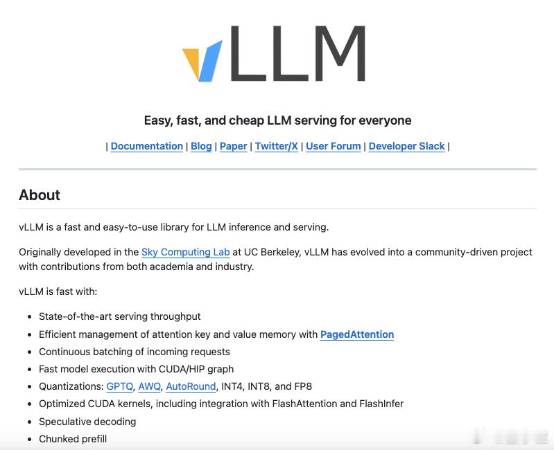 「学习资源」vLLM项目:github.com/vllm-project/vllm