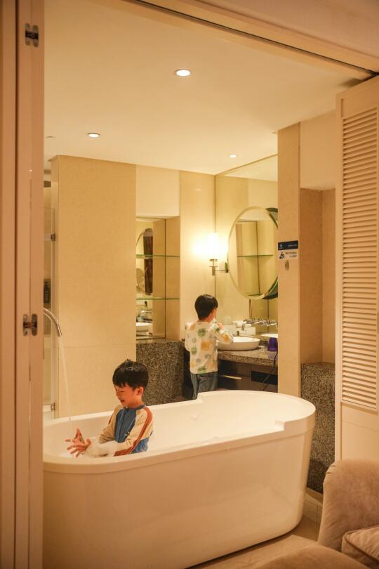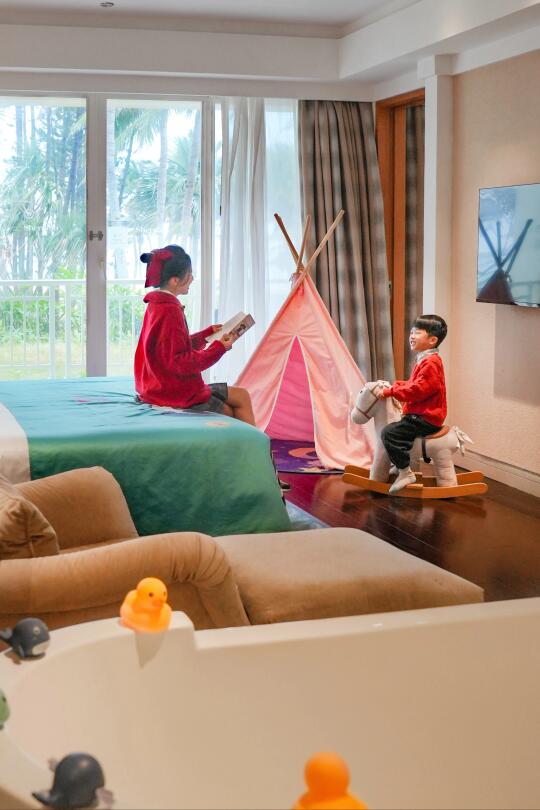 ✅我们这次是两大两小,所以选了双房家庭房,阳台对着沙滩,也🈶儿童装饰,木马🎠小帐篷,在房间也能玩🥳