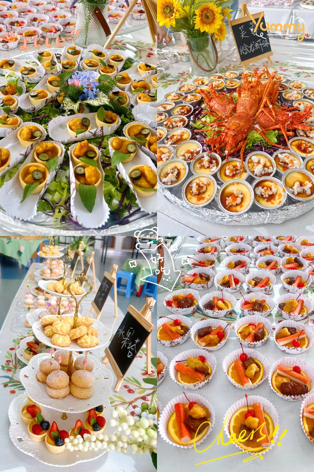 🍴自助餐:开放日除了给家长准备了点心水果,还带孩子试了他们的硬核自助餐!芝士龙虾🦞,海鲜意面🍝,幼儿园都卷到这水平了吗😆😆呐!直接上图👆🏻