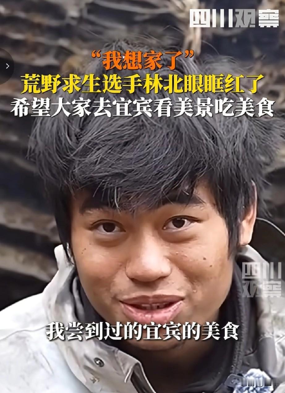 当宜宾文旅的祝福隔着屏幕递到林北(张博林)面前时,这个镜头前总笑着说“没事”的00后,终于红了眼:“我有点想家了。” 二十几天前,他背着包一头扎进张家界的荒野——不是为了“冒险”,是想在山林的寂静里,接住那个被生活砸懵的自己。 刚毕业的迷茫还没散,创业失败的债就压了上来:爸妈偷偷叹气的背影,女朋友欲言又止的眼神,连本命年的红绳都像捆着千斤重的“愧疚”。他逃也似的躲进深山,想在无人问津的绝境里,把“颓败”磨成“坚强”。 钻木取火时被烟呛出眼泪,啃野果时笑着说“比外卖健康”,镜头每一次对准他,他都要亮着嗓子喊:“我是宜宾的林北!我们宜宾的燃面比这野果香多啦!” 没人知道他夜里裹着衣服听虫鸣时,会不会想起家里的热汤;也没人知道他踩着泥坑找水源时,有没有偷偷算过“离回家还有几天”。 直到宜宾文旅的那句“长江首城永远是你坚强的后盾”落进耳朵里——原来他没说出口的想念,家乡早接收到了;原来他藏在笑里的无助,早被家乡的目光轻轻接住了。 这山风再凉,也抵不过一句“回家吧”的温暖。 荒野乱斗 荒野求生