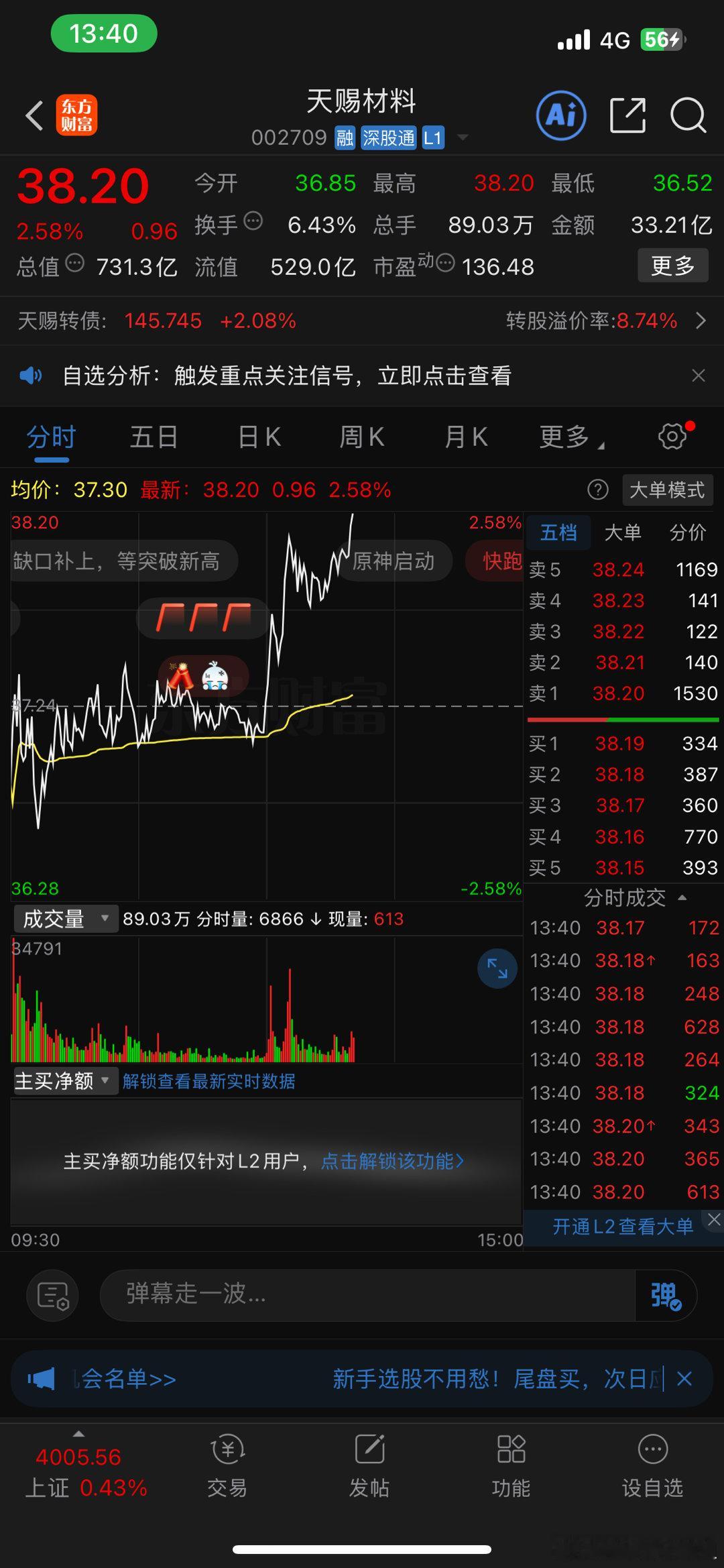 天赐材料,起飞信号已现🛫🛫觉得能涨停的来波168,看看谁能精准拿捏这波大肉!
