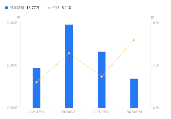 日期A股户数(户)流通A股户均持股数(股)户均持股市值(万元)2025-09-3018768617850.5514.482025-06-3021306915724.0011.382025-03-3123859614041.7210.942024-12-3119778216939.3512.042024-09-3018207418400.7511.572024-06-3019203815433.927.862024-03-3120812014241.309.212023-12-3121844213568.369.972023-09-3021536513762.2110.012023-06-3020985214123.7611.47