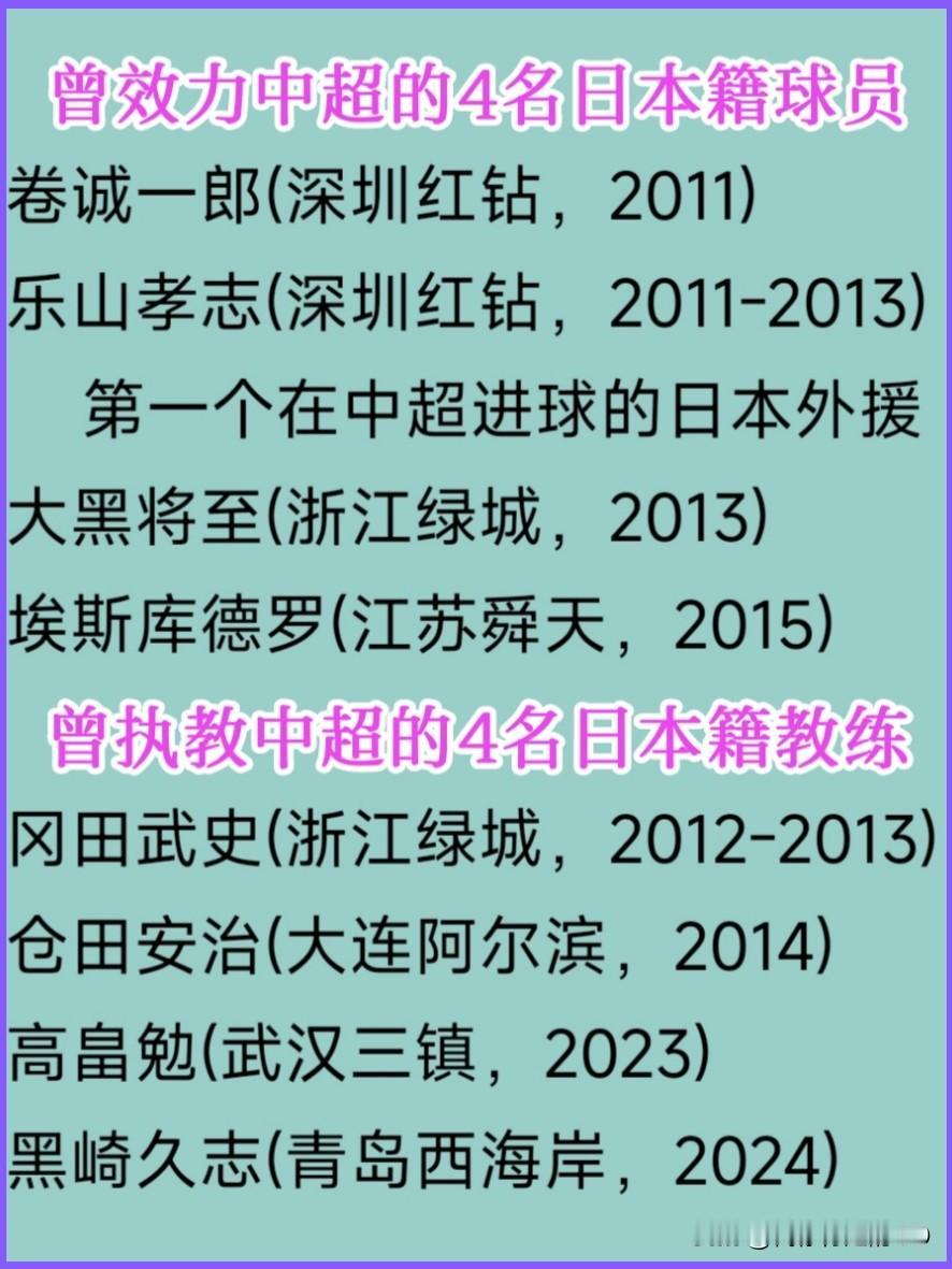 中国的足球联赛中有日本人! 不要奇怪~目前有1个球员和2个教练,以前也有不少。