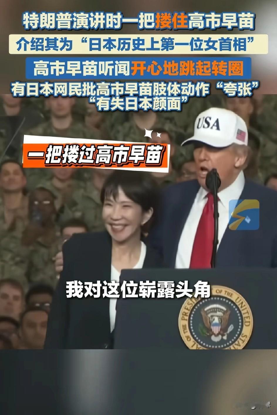 你敢信这是两国政要的举止 小日子的女首相早苗,跳起来的动作就让人很震惊了,结果老特还反手还一把抱住她!我差点一口水没把自己给噎死,这是什么操作?[捂脸] 这世界真是一个巨大的草台班子!这不是丢小日子的脸面,这是在让世界看笑话呢。 怎么感觉他们好像是一群演员呢?每天都在给大家上演搞笑滑稽的画面,每天都能给大家带来槽点和笑点。 不得不说,有了他们,我一天笑容都多了一些[捂脸][捂脸] 期待他们明天的精彩表演,以及爆炸性新闻!