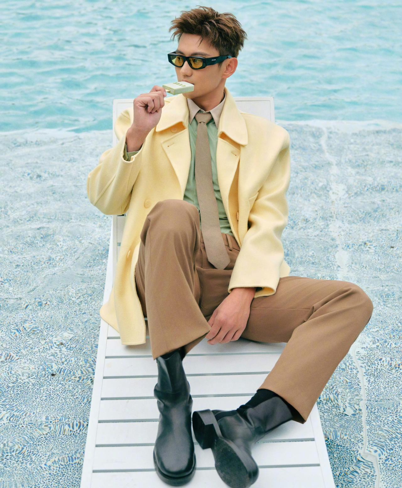 宁泽涛请原地出道! 今晚出席ELLE时尚盛典的宁泽涛又带来好几套look,金发超衬他!海边活动一套明黄色西服温暖又阳光,走红毯换了一身白色西服,休闲有型,同时还拍了一组水中穿睡袍小露了一下胸肌,他的颜值状态都在线,优越比例太出众,整体造型又帅又亮眼,比好多男明星男顶流强太多了!