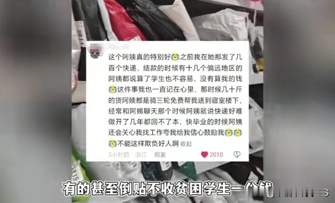 让学生徒步一小时去寄快递,校长却开着豪车随意进出。 江西某所学校里一位快递站阿姨,人特别好心疼学生不容易,寄快递还给优惠,贫困生甚至倒贴钱都不收。就这么一位良心商家,因为学校年年涨房租,6年里搬了6次地方,最后直接被赶出学校了。 这下好了,学生们取个快递,得走出校门,来来回回要花一个小时!不管是大冷天还是大夏天,都得这么折腾。以前阿姨的三轮车还能进校园收快递,现在三轮车都不让进了。 学校里天天能看到劳斯莱斯、迈巴赫这些豪车随意进出。一个刚从专科升成本科的学校不好好搞教育,净整这些让人看不懂的操作,真是刚升本就忘了本!