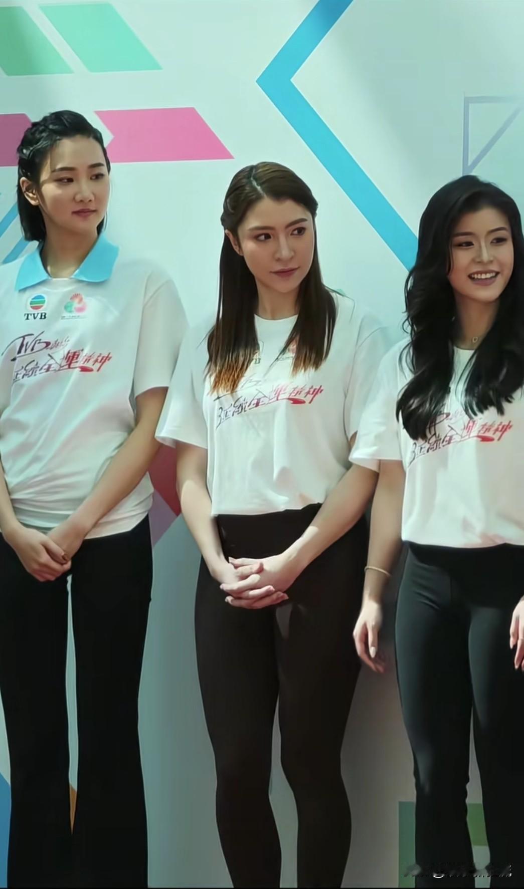 2025香港小姐冠军、亚军、季军三人组同框,从右往左依次是冠军陈咏诗,亚军施宇琪,季军袁文静,巧合的是三人身高正好由低到高,三人同台参加活动,没有穿华丽的选美比赛服,而是T恤+瑜伽裤,虽然陈咏诗身高受到很多质疑,但是看上去她的腿部线条是最好的,难怪能过的冠军。香港小姐