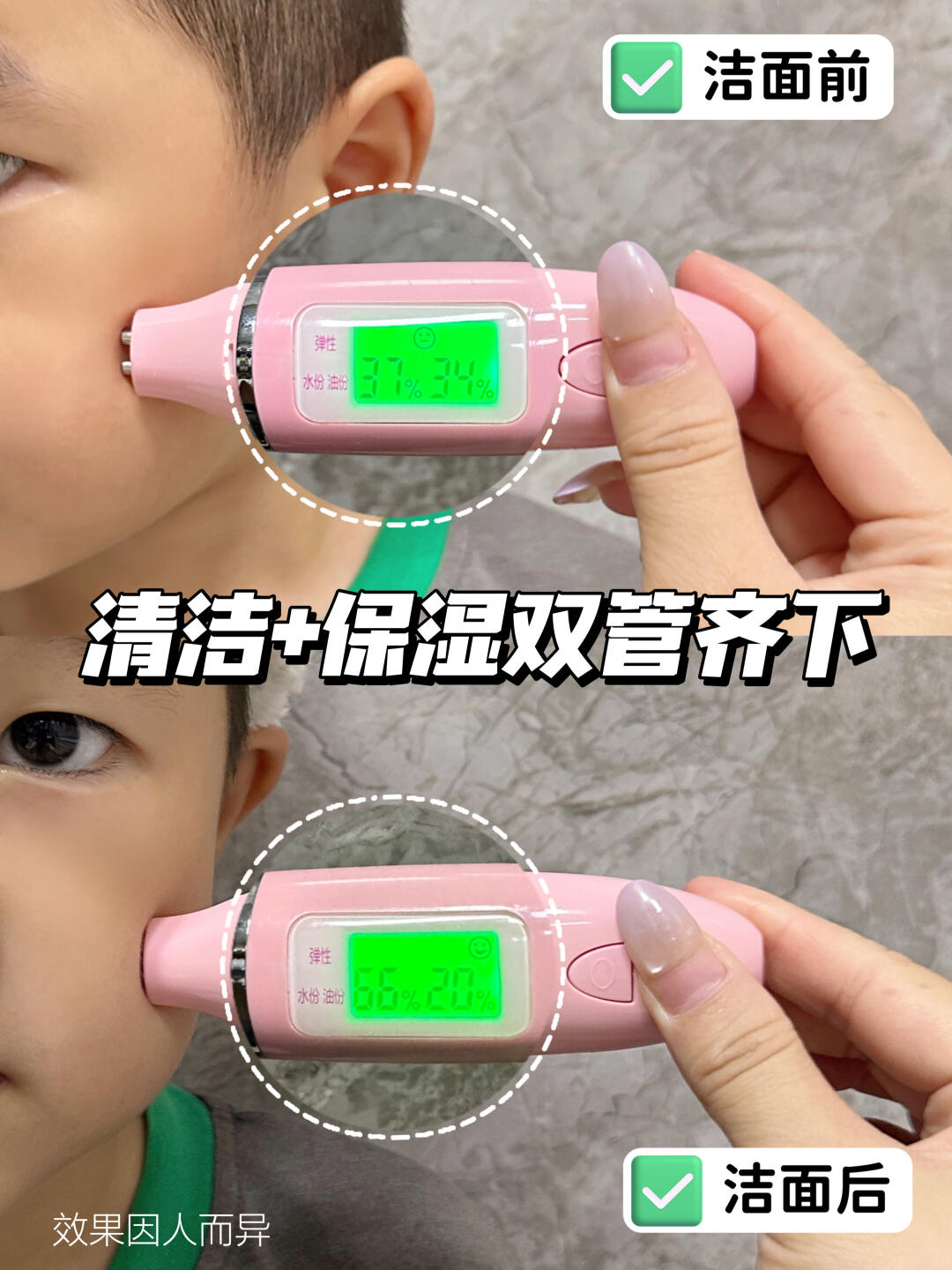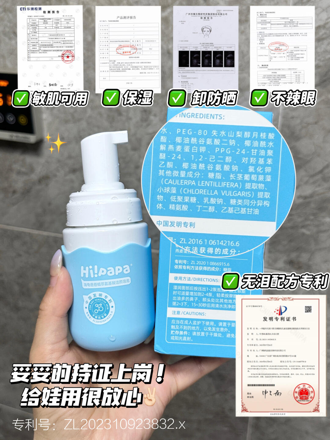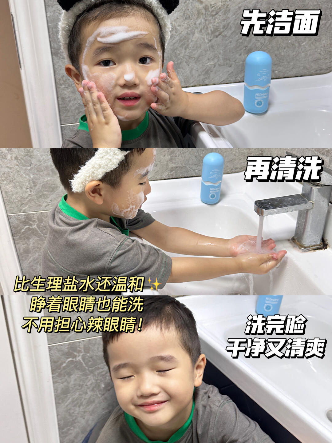 无泪配方真的温和,不小心糊眼也不哭不闹!温和的同时清洁力也毫不含糊,上脸轻轻揉搓几下 日常防晒和黏腻污垢都能轻松洗光光!(ps在景区脸上画的面部彩绘也是用它卸掉的)洗完小脸水润润的 完全不绷不干~小脸摸起来软软嫩嫩,而且美修上也是一路绿灯 敏感肌宝宝也能安心用!