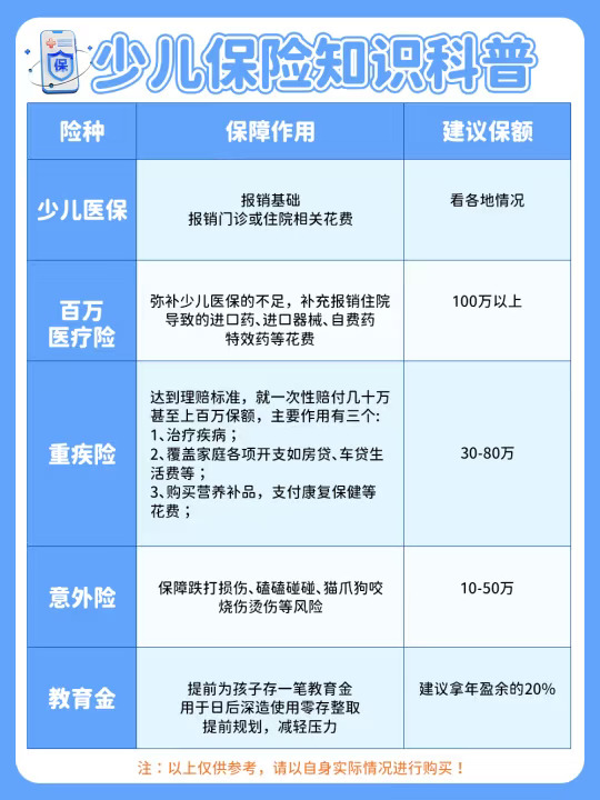 首先是国家医保,用来报销基础门诊的看病花销然后是百万医疗险,补充国家医保的不足,用于报销住院费用的缺口,还有补全自费药、进口药、进口器械的不足重疾险也配置好了,用来应对大病报销,不为钱发愁教育金则是为了提前规划孩子的教育计划,除了上述四种保险外,我觉得最实用的还得是宝宝意外险,为此我特地研究了很久,最终选择的是支付宝上的无忧保:少儿综合意外险