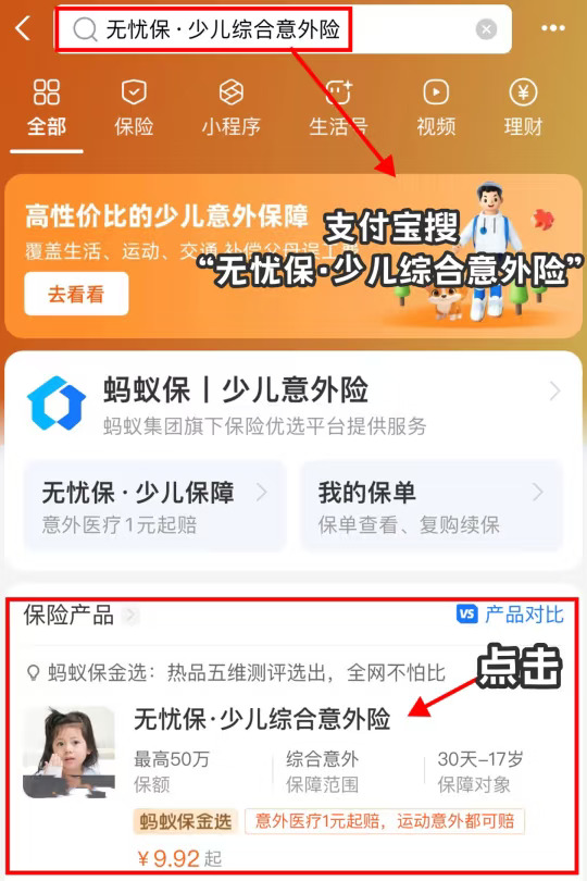 所以,感兴趣的宝妈们,可以去支付宝搜一下【无忧保·少儿综合意外险】,给宝宝的成长路上多一份保障。(*本产品由国泰产险、众安保险承保,具体费率及保单金额以实际为准)