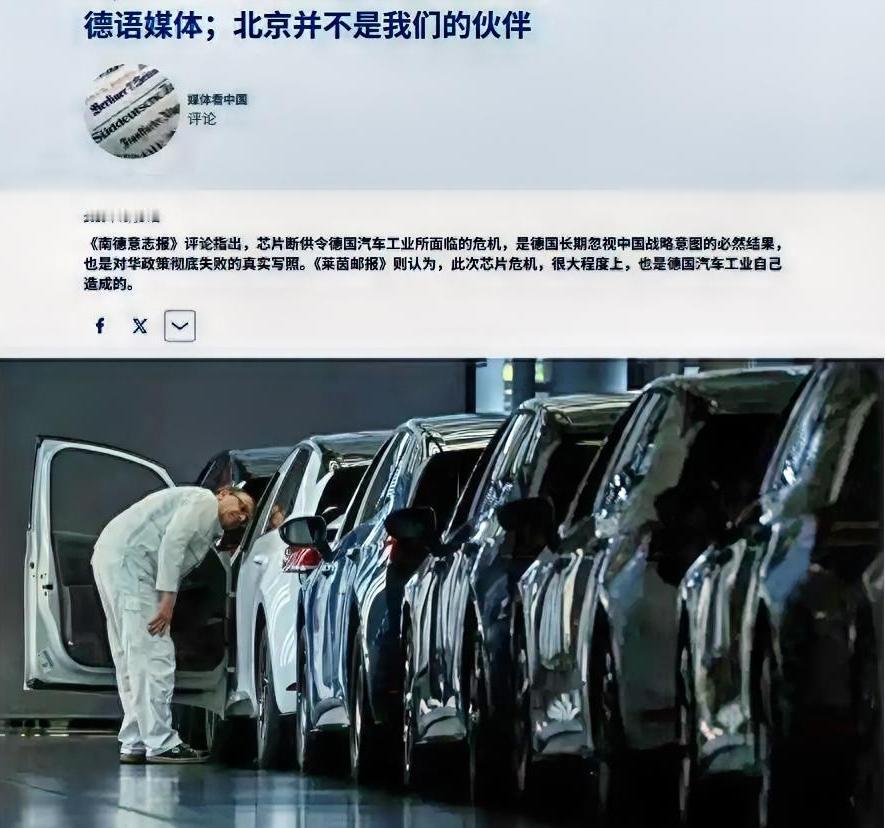 快讯 快讯 德国媒体对中国喊话了 近期,德媒《南德意志报》等媒体发惊人之语,大致意思是:“中方芯片断供令德国汽车工业饱受其苦,这很大程度上也是德国汽车工业自己造成的。这是德国长期忽视中国战略意图的结果,也是我们对华政策彻底失败的真实写照。德国直到现在才终于意识到,北京并不是我们的伙伴。” 这话说得可真逗。德国汽车业现在知道喊疼了?早些年在中国市场赚得盆满钵满的时候,怎么不说这话? 看看大众汽车的数据。去年在中国卖了300多万辆车,全球三分之一销量靠中国市场撑着的。宝马、奔驰哪个不是靠着中国消费者养活?现在倒打一耙说中国不是伙伴? 德国车企这些年在中国的操作才叫绝。核心技术捂得死死的,变速箱技术不让碰,发动机专利卡得严。就想让中国永远当组装车间,永远买他们的零部件。 中国发展自己的芯片产业怎么了?《中国制造2025》白纸黑字写了要搞半导体,都发布多少年了。自己不当回事,现在跑来抱怨? 记得去年慕尼黑车展吗?比亚迪的展台被围得水泄不通,德国人排队试驾。相反大众的电动车展区冷冷清清。这一幕多讽刺? 德国汽车业的问题明明出在自己身上。电动车转型慢吞吞,软件系统落后一代。特斯拉在上海建厂时,他们还在纠结要不要停产燃油车。 现在全球电动车销量前三都是中国品牌。比亚迪今年一季度在欧洲卖了快5万辆,价格比国内贵一倍,照样抢手。这说明什么? 合作本来就是互相的。既想赚中国人的钱,又想卡着技术不让学,天底下哪有这种好事?德国媒体现在抱怨,不如回去问问自家车企:为什么在电动车赛道上被反超? 各位读者你们怎么看?欢迎在评论区讨论。